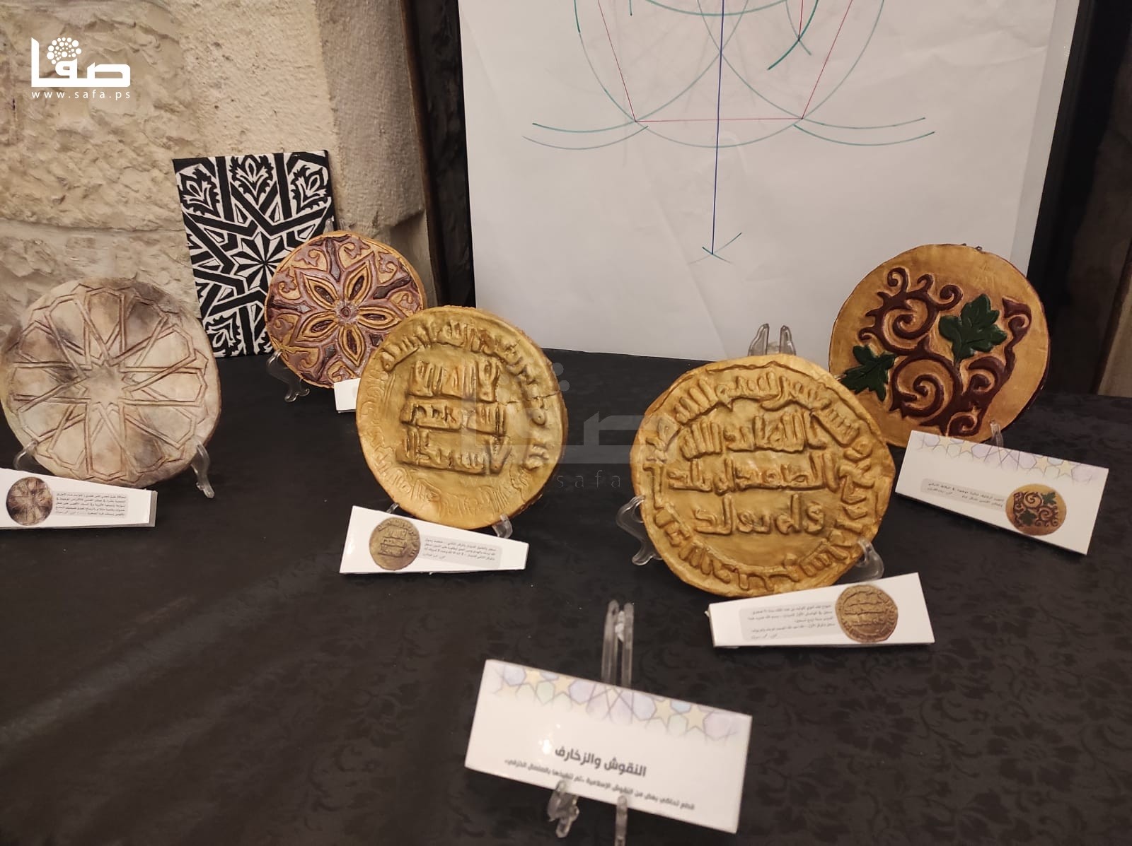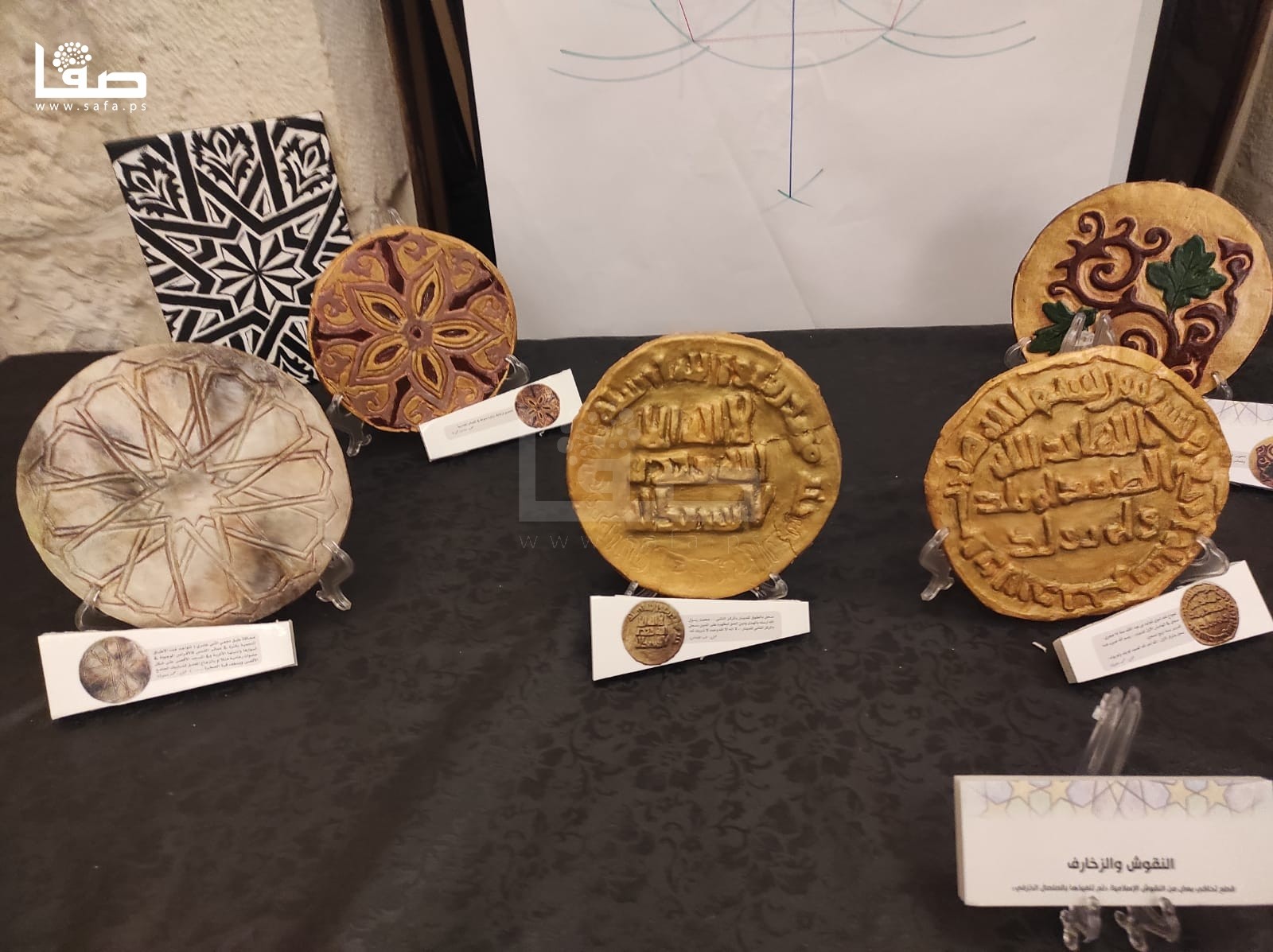 وتضيف "يحتوي المعرض على 19 لوحة زخارف هندسية أو فسيفساء، بالإضافة إلى ما يقارب 12 قطعة خزف متنوعة ما بين نقوش نباتية هندسية أو كتابية منها نموذج لنقد أموي كعملة إسلامية".
