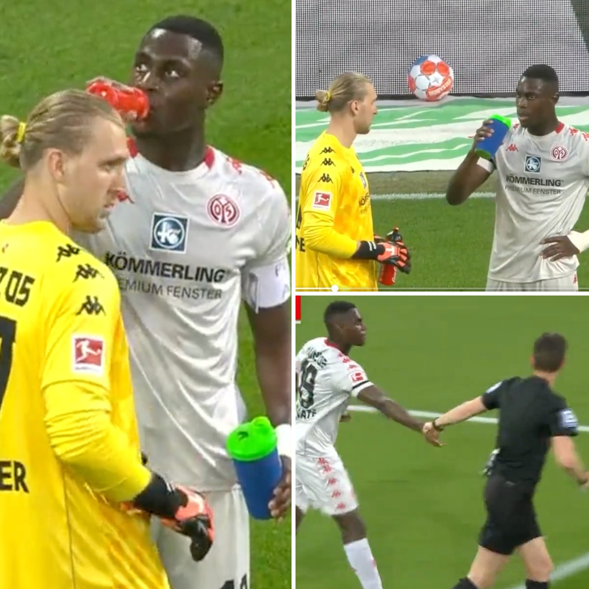 وحدث هذا الأمر لأول مرة في ألمانيا الأسبوع الماضي عندما أوقف حكم مباراة ماينز وأوجسبورج ماتياس يولينبيك المباراة قليلاً من أجل أن يتمكن قائد فريق ماينز موسى نياكاتي من الإفطار مع موعد الأذان، حيث شرب القليل من الماء، وواصل اللقاء بشكل طبيعي.