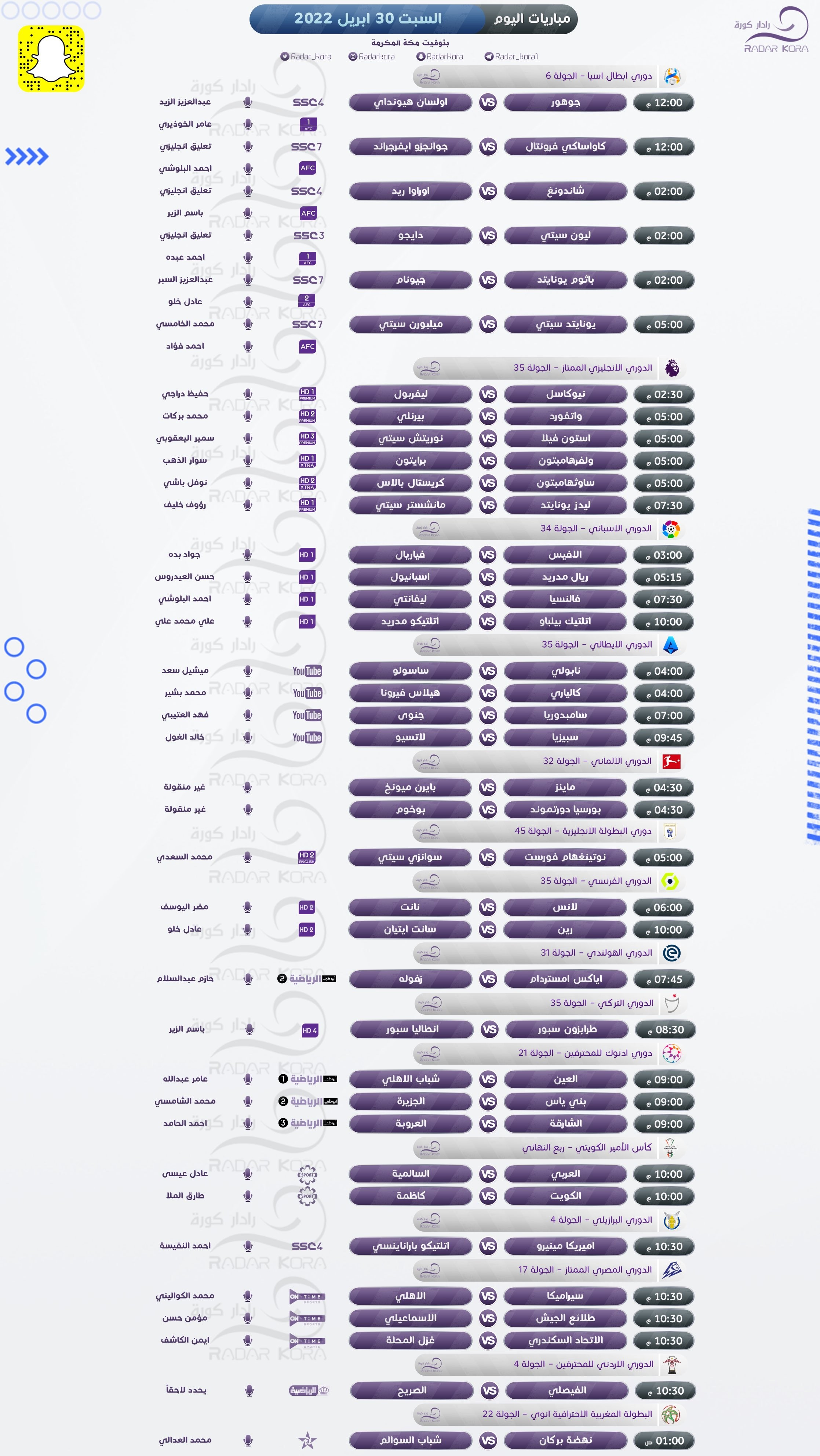 تتجه أنظار عشاق كرة القدم اليوم السبت لعدة مباريات في الدوريات الأوروبية المختلفة، والدوري المصري.