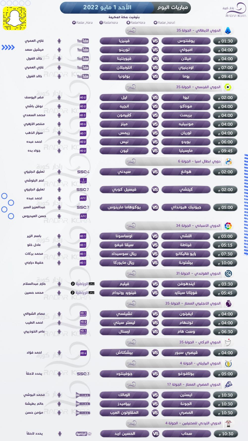تتجه أنظار عشاق كرة القدم اليوم الأحد لعدة مباريات مهمة في الدوريات الأوروبية المختلفة، والدوري المصري.