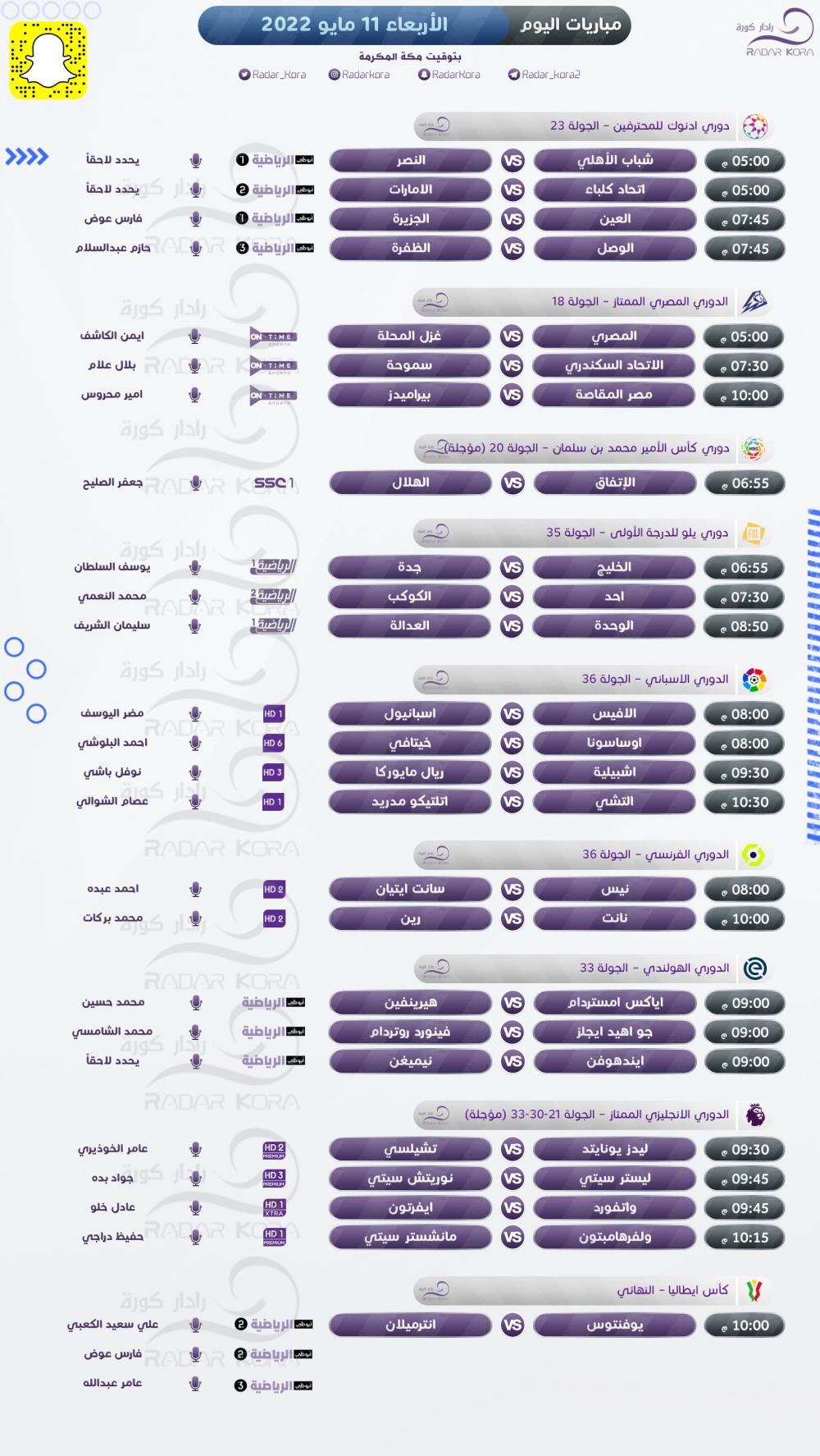 تتجه الأنظار مساء اليوم الأربعاء لمباراة نهائي كأس إيطاليا، والدوري الإنجليزي، والإسباني، والمصري لكرة القدم.