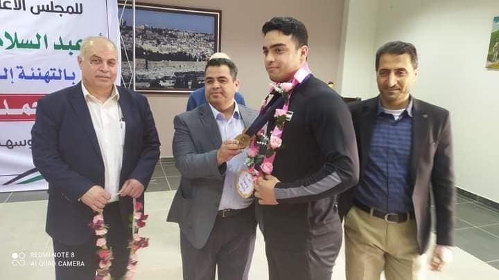 وكان حمادة أحرز الذهبية الأولى لفلسطين برفعه وزن "168 كجم" في الخطف، قبل أن يحصل على البرونزية في المجموع العام برفعه وزن "361 كجم" في الخطف، والنتر.