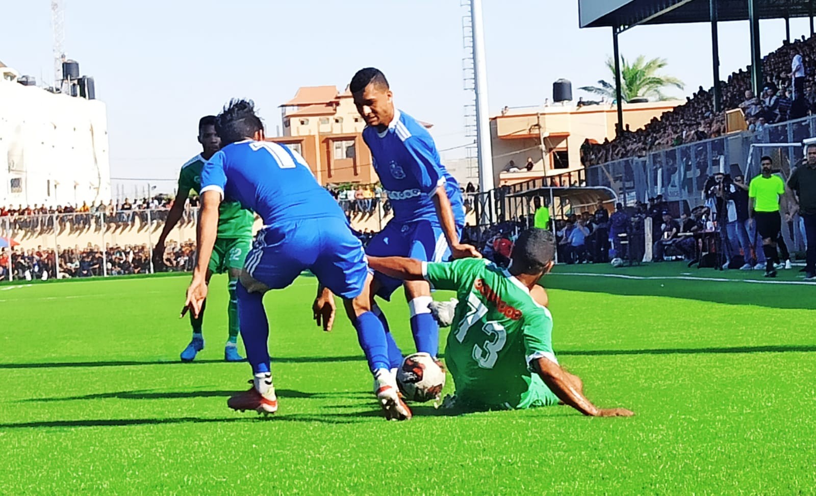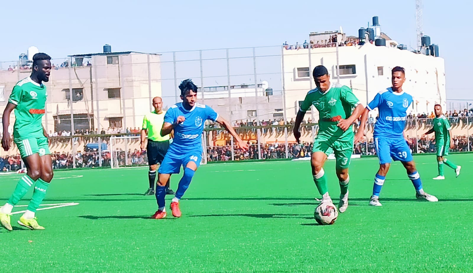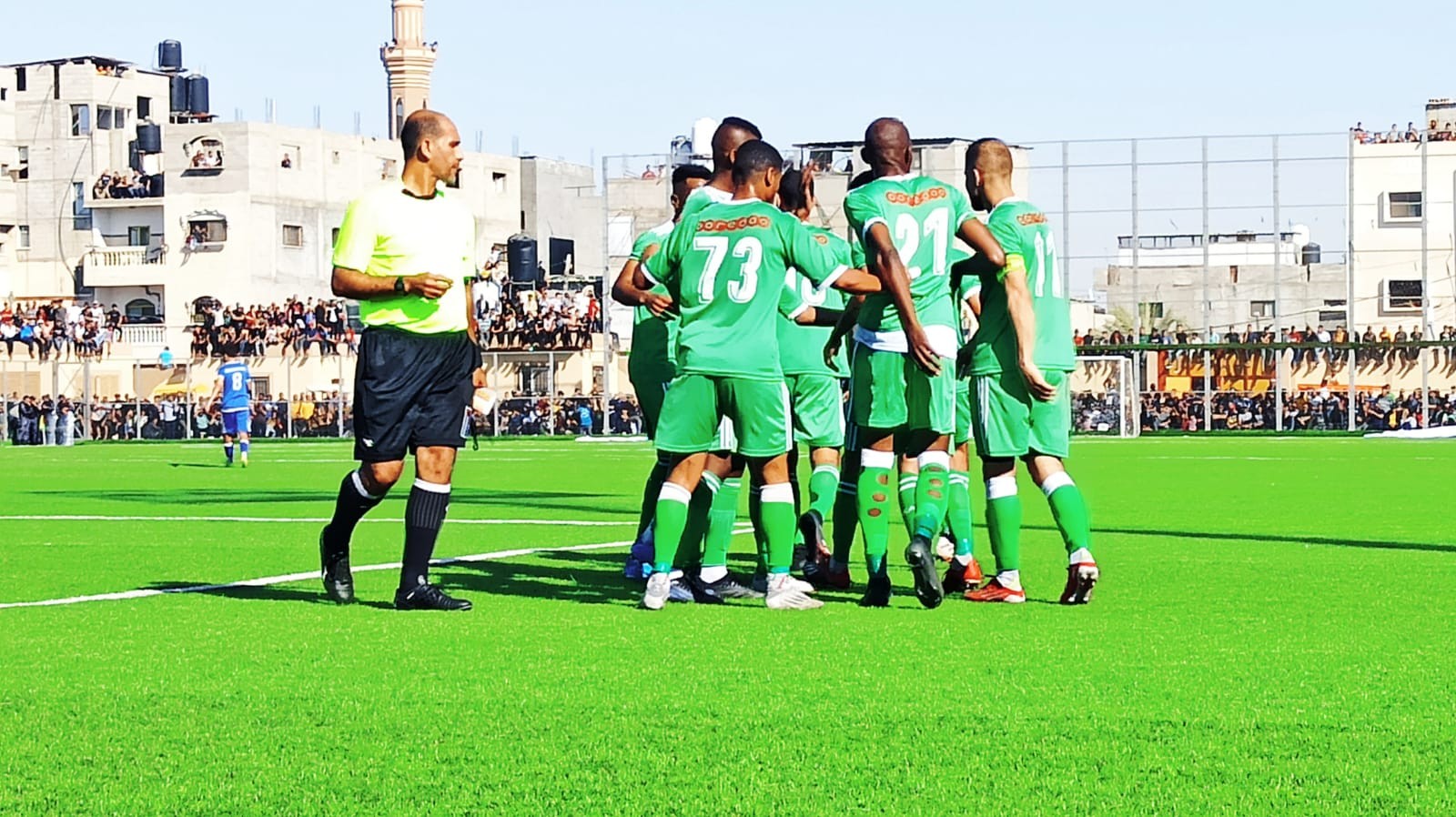 وقاد اللقاء تحكيميًا: الدولي خالد الشيخ خليل للساحة، وساعده محمود أبو حصيرة، ومحمد اليازجي للخطوط، والدولي سامح القصاص رابعًا.