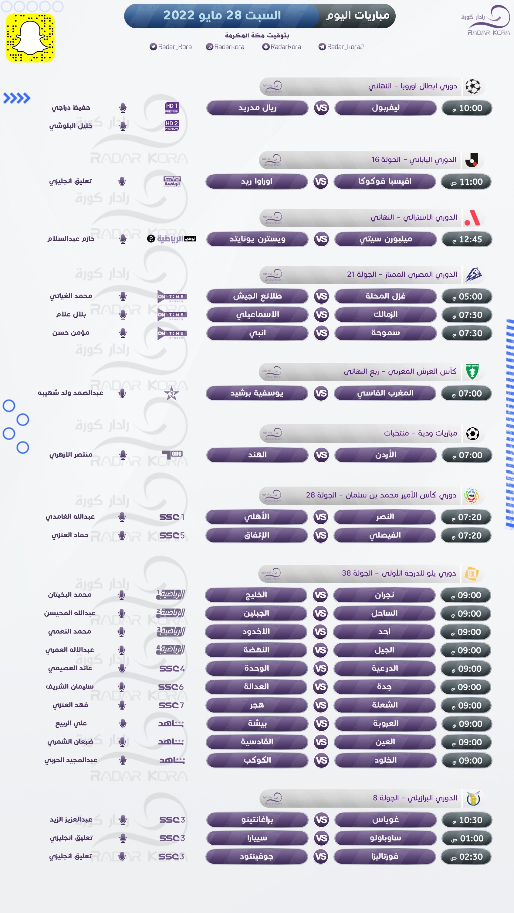 تتجه أنظار عشاق كرة القدم اليوم السبت لمباراة نهائي دوري أبطال أوروبا، والدوري المصري.