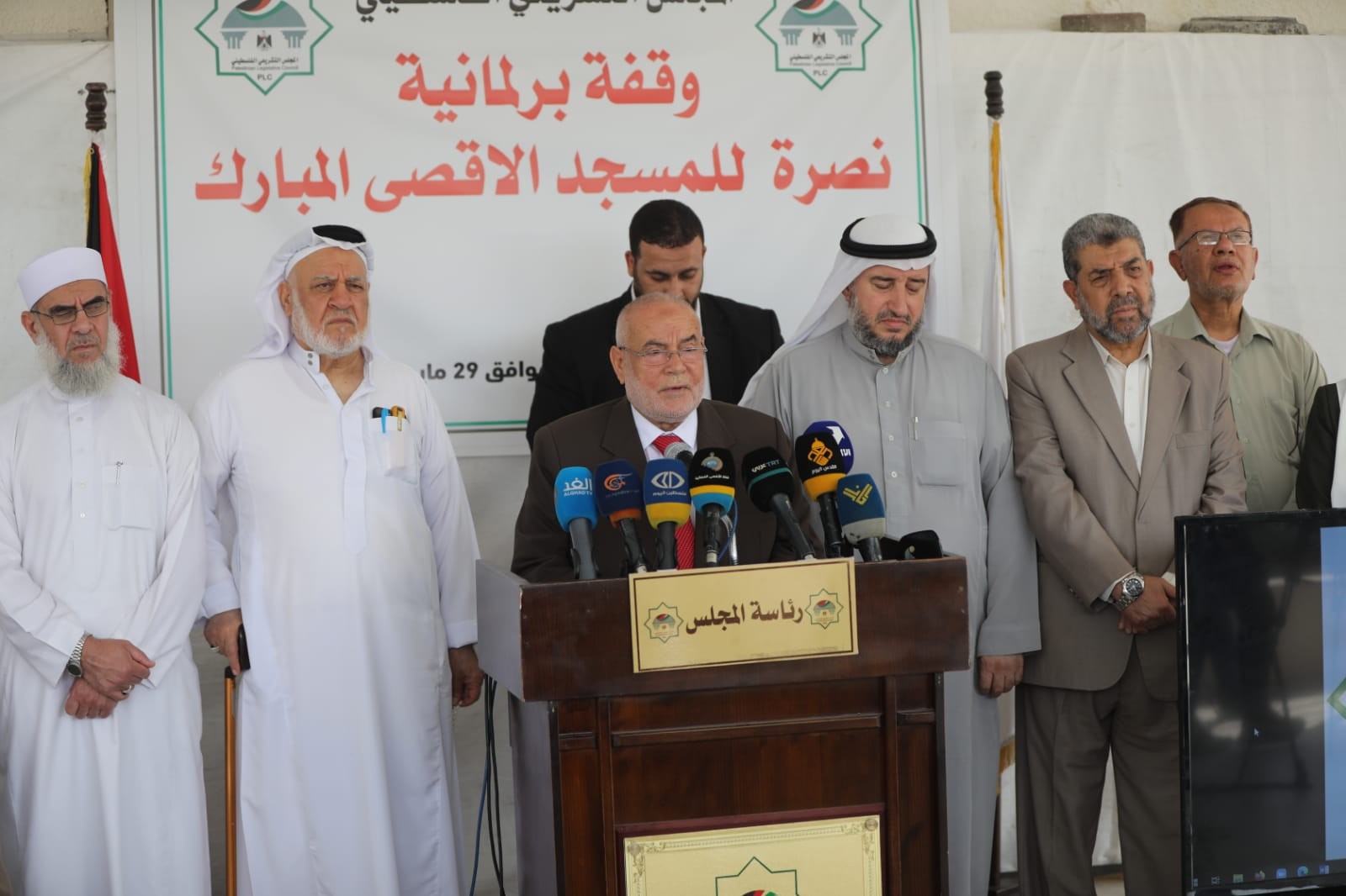 ودعا البرلمانات والاتحادات البرلمانية العربية والإسلامية والدولية والجامعة العربية ومنظمة التعاون الإسلامي والمنظمات الإقليمية والدولية كافة، إلى وقفة جادة وحقيقية في وجه الاحتلال الصهيوني وعدوانه المتواصل ومخططاته العنصرية ضد المسجد الأقصى ومدينة القدس.