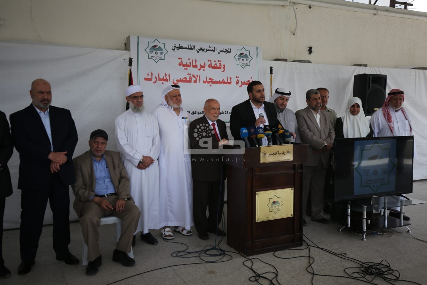 من ناحيته؛ قال النائب في كتلة فتح البرلمانية إبراهيم المصدر: "حماية الأقصى والقدس ليست مسؤولية الشعب الفلسطيني ولكن هو رأس الحربة ومطلوب من كل الأمة العربية والإسلامية وأحرار العالم الدفاع ونصرة القدس والأقصى".