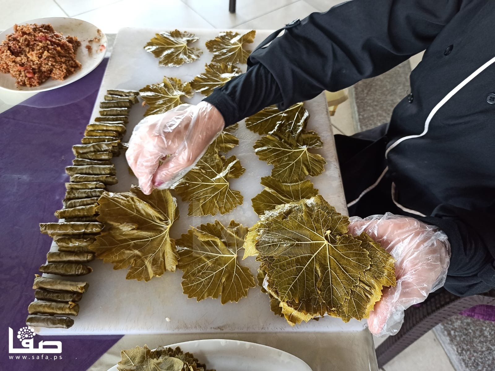 وحول طريقة التحضير، توضح الطاهية: "يُغسل الورق جيدًا، ثم يُسلق في الماء ليتحول إلى اللون الداكن، ومن ثم يتم تحضير الحشوة؛ سواءً الأرز أو البرغل مع مزيج من اللحم المفروم والبهارات والتوابل الطازجة والطماطم، وتوضع الحشوة داخل أوراق العنب وتلف بشكل أسطواني، ثم يتم صفّها فوق شرائح قدرٍ أسفلها شرائح الخضار ويترك على النار حتى النضوج، ولا تنسى طاهياته رشّ زيت الزيتون وقطرات الليمون فور تقديم الطبق.