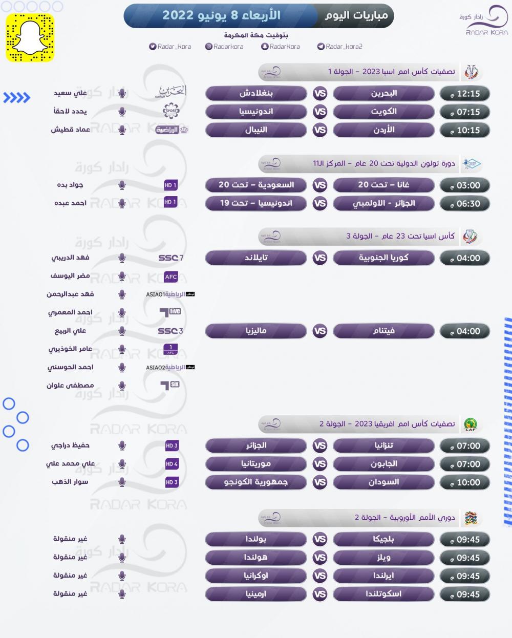 وفي التصفيات المؤهلة لكأس أمم آسيا 2023، يلعب المنتخب الوطني الفلسطيني مع منغوليا، والفلبين مع اليمن، والبحرين مع بنجلادش، والكويت مع إندونيسيا، والأردن مع النيبال.