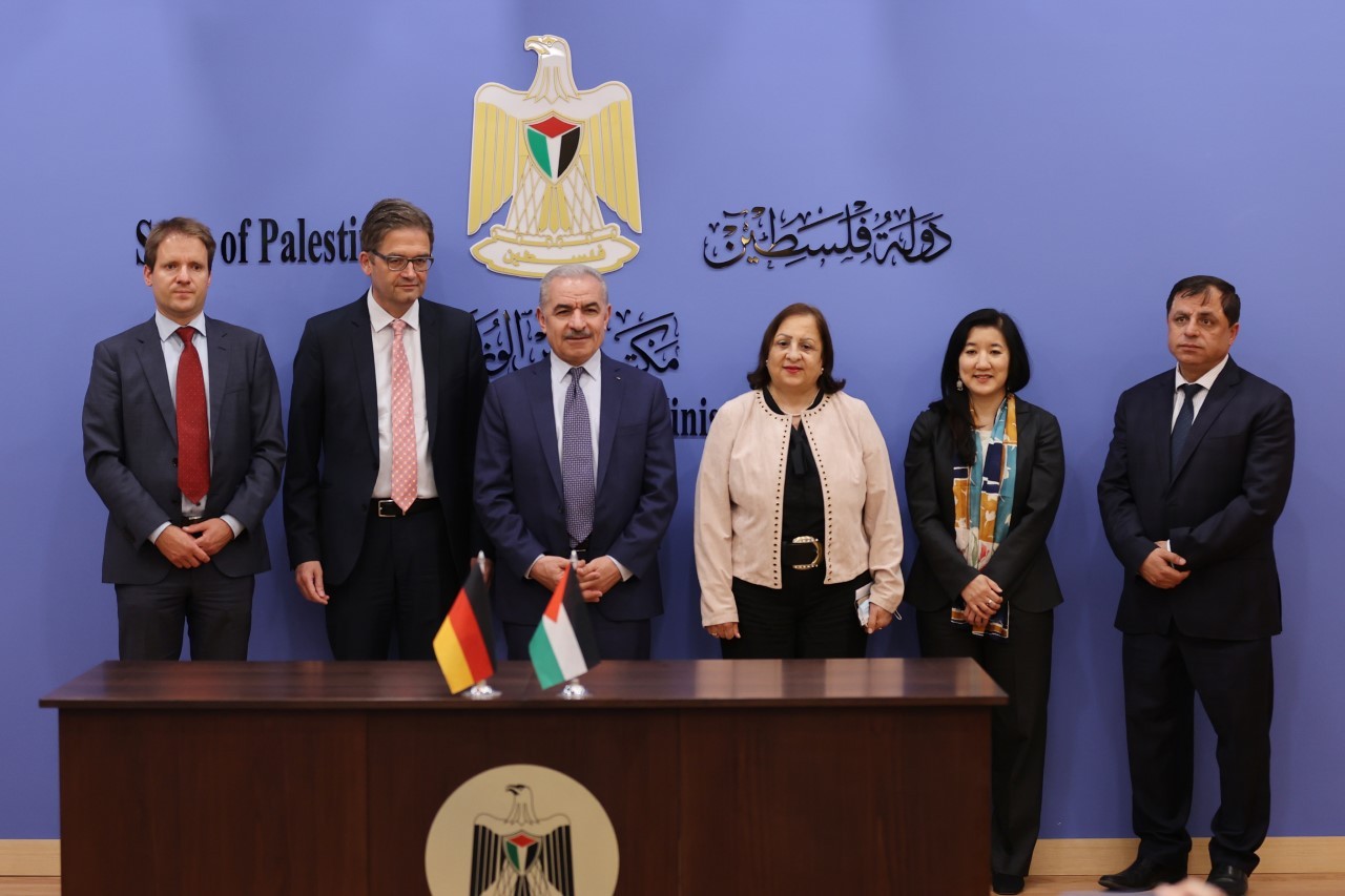 وجرى توقيع الاتفاقية برعاية وحضور رئيس الوزراء محمد اشتية في مكتبه بحضور وزيرة الصحة مي كيلة، وممثل ألمانيا لدى فلسطين أوليفر أوفتشا، ووكيل وزارة المالية فريد غنام، ومدير مكتب بنك التنمية الألماني في فلسطين ديفيد كونز، ونائب الممثل الخاص لبرنامج الأمم المتحدة الإنمائي شيتوسي نوغوتشي.
