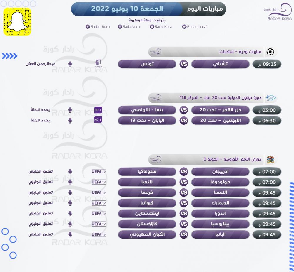 تتجه أنظار عشاق كرة القدم اليوم الجمعة لمباريات عدة في بطولات عالمية مختلفة للمنتخبات.