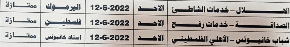 وتجمع المباريات هلال غزة مع خدمات الشاطئ، وشباب خانيونس مع أهلي غزة، والصداقة مع خدمات رفح.