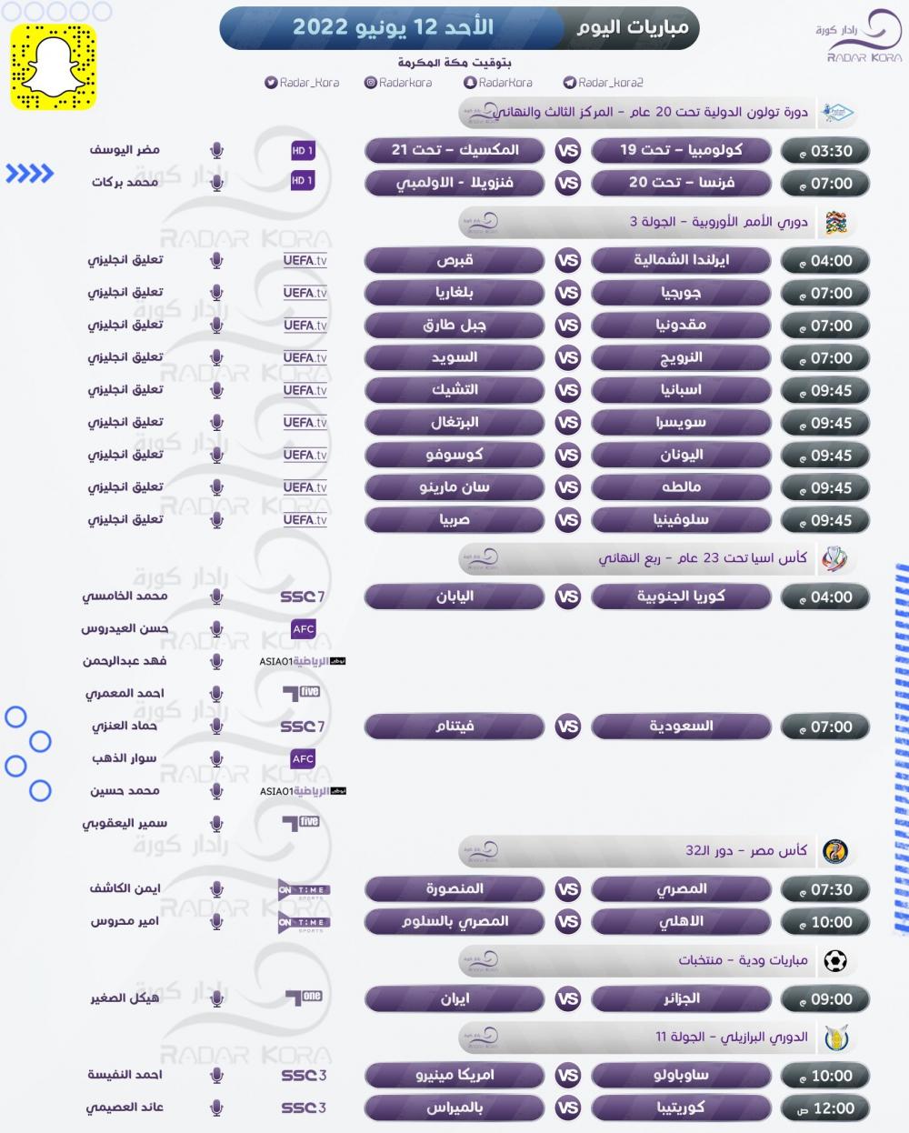 جدول أبرز مباريات الأحد في البطولات المختلفة