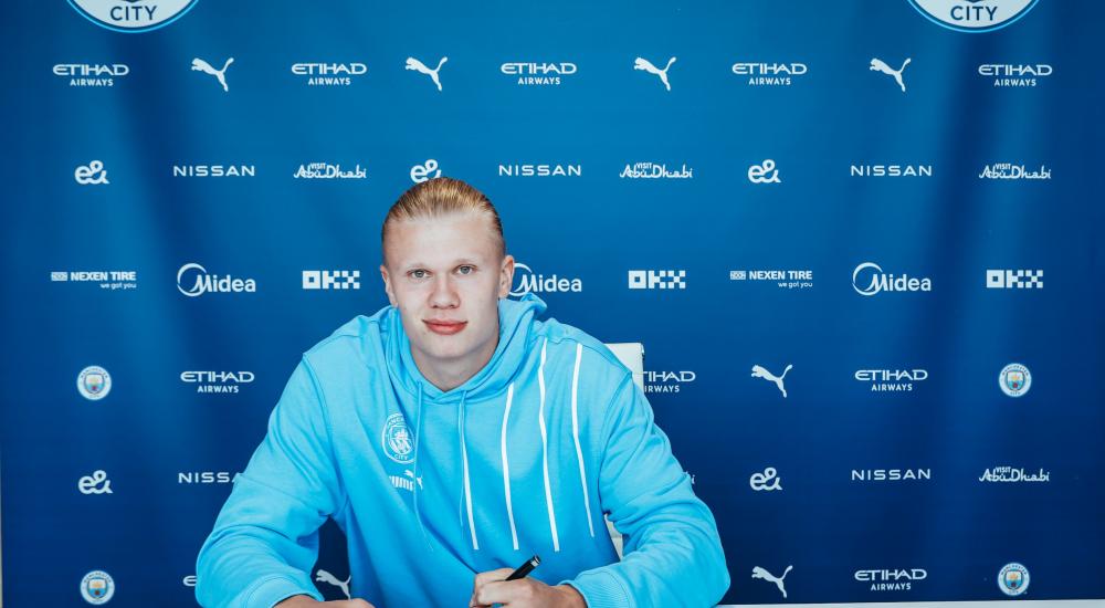 قدم نادي مانشستر سيتي "حامل لقب الدوري الإنجليزي الممتاز لكرة القدم" الاثنين، لاعبه الجديد الدولي النرويجي إيرلينج هالاند، القادم من بوروسيا دورتموند الألماني.