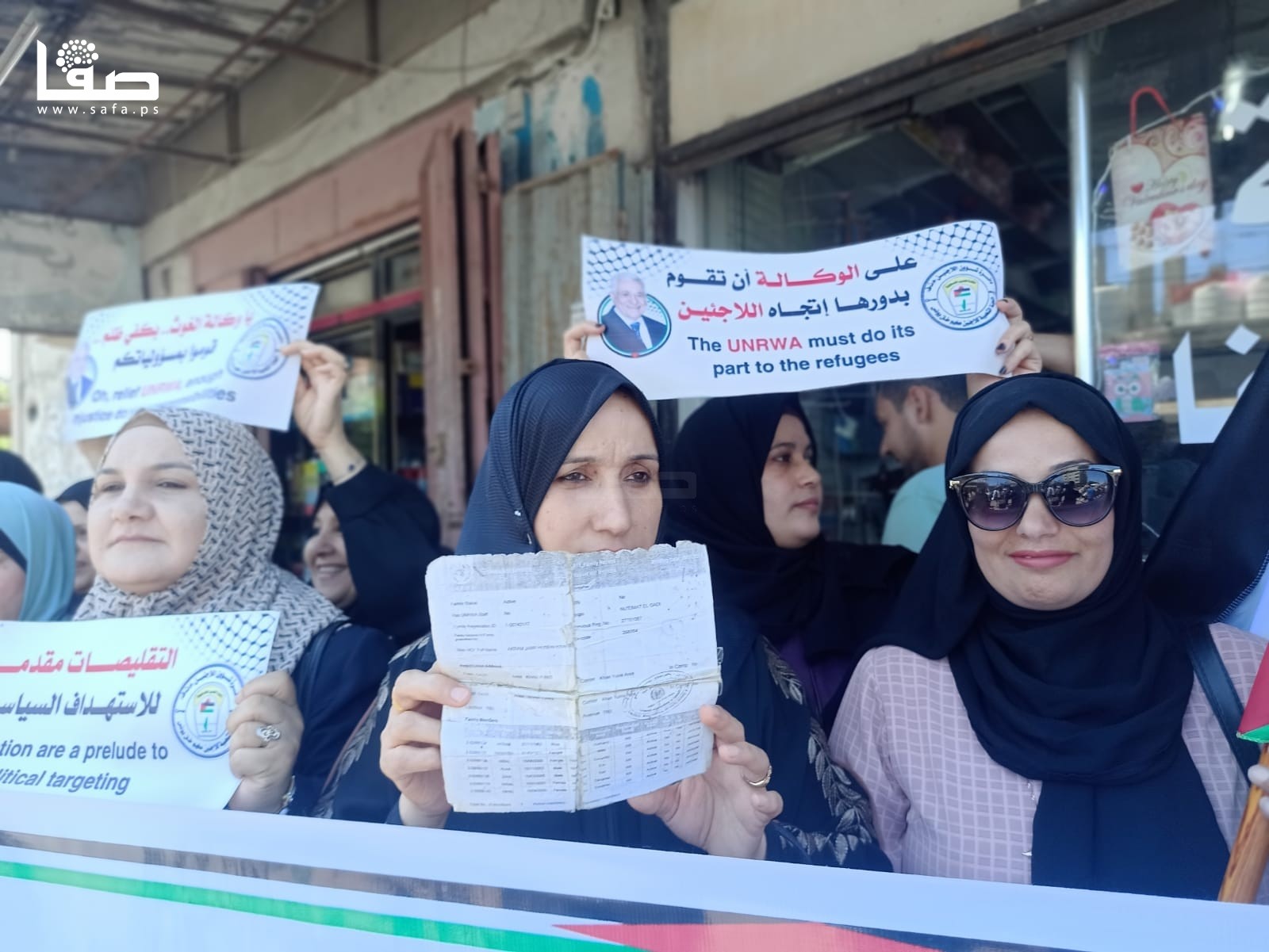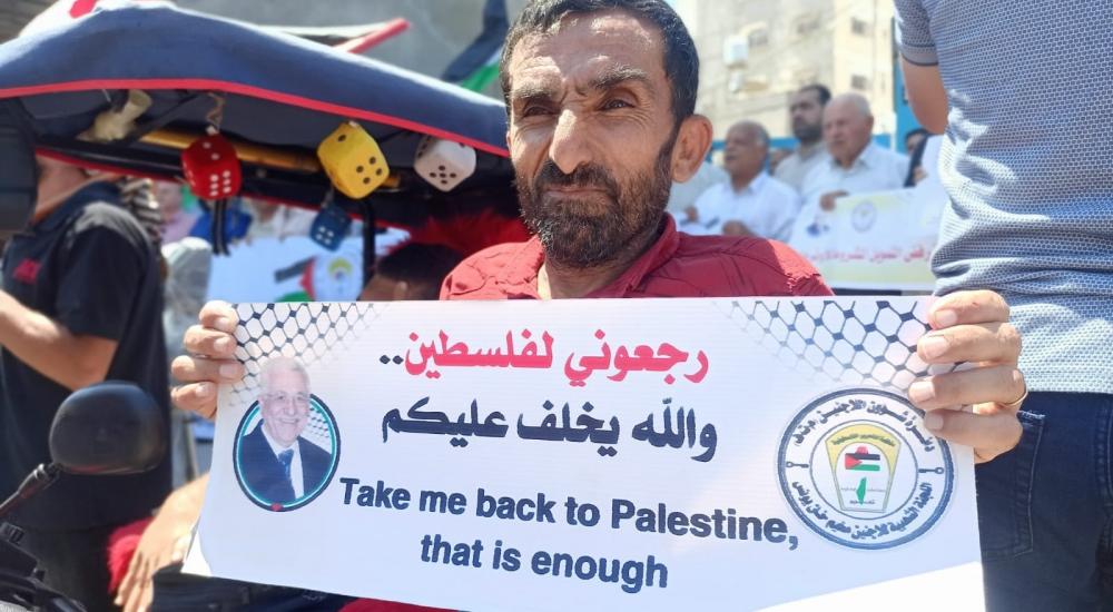 ورفع المشاركون في الوقفة لافتات كتب عليها "من حقي التعليم والعناية الصحية والغذاء، يا وكالة الغوث بكفي ظلم، الوكالة الشاهد الوحيد على نكبة فلسطين، لا لتقليصات الوكالة المُجحفة بحق اللاجئين..".