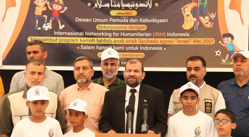 وأضاف: "يأتي هذا المخيم انطلاقًا من دورنا الوطني للوقوف إلى جانب أبناء الشهداء ودعمهم ومساعدتهم لتجاوز الظروف التي يمروا بها من خلال تنفيذ أنشطة وفعاليات ترفيهية وفنية وتفريغ نفسي"، مثمنًا جهود مؤسسة الشبكات الدولية للأعمال الإنسانية – إندونيسيا INH وتعاونها لتنفيذ المخيم، مشيدًا بالدعم الإندونيسي الرسمي والشعبي لدعم الشعب الفلسطيني.