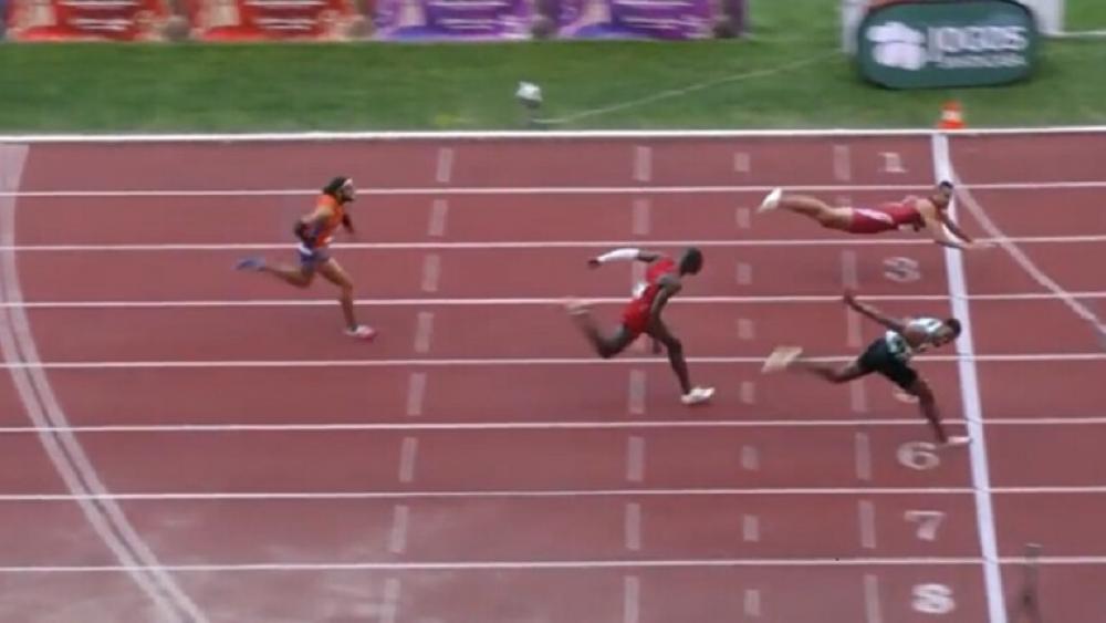 وأظهرت لقطات "فيديو" دي أوليفيرا وهو يقفز إلى الأعلى قبل أن يرتمي على خط النهاية في الأمتار الأخيرة من السباق، حين كان في منافسة متكافئة مع العداء البرتغالي عبد القادر لاريناجا.