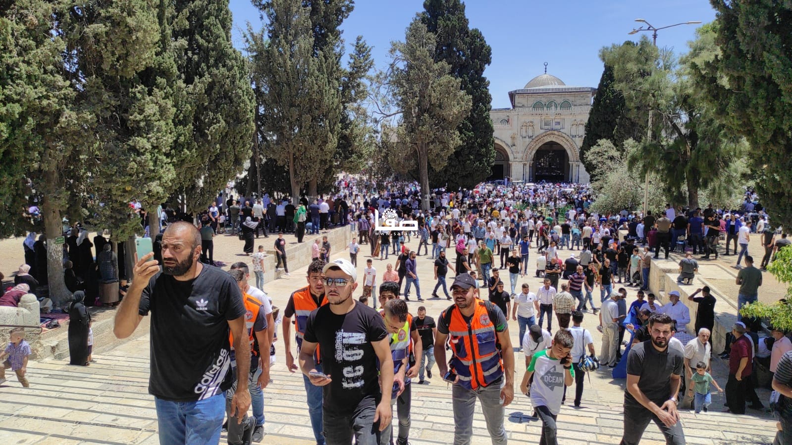ومنذ ساعات الفجر الأولى، توافد عشرات آلاف المصلين إلى المسجد الأقصى المبارك من القدس والضفة الغربية والداخل الفلسطيني المحتل، وأدّوا صلاة الفجر في ساحات المسجد المبارك ومصلياته المسقوفة.