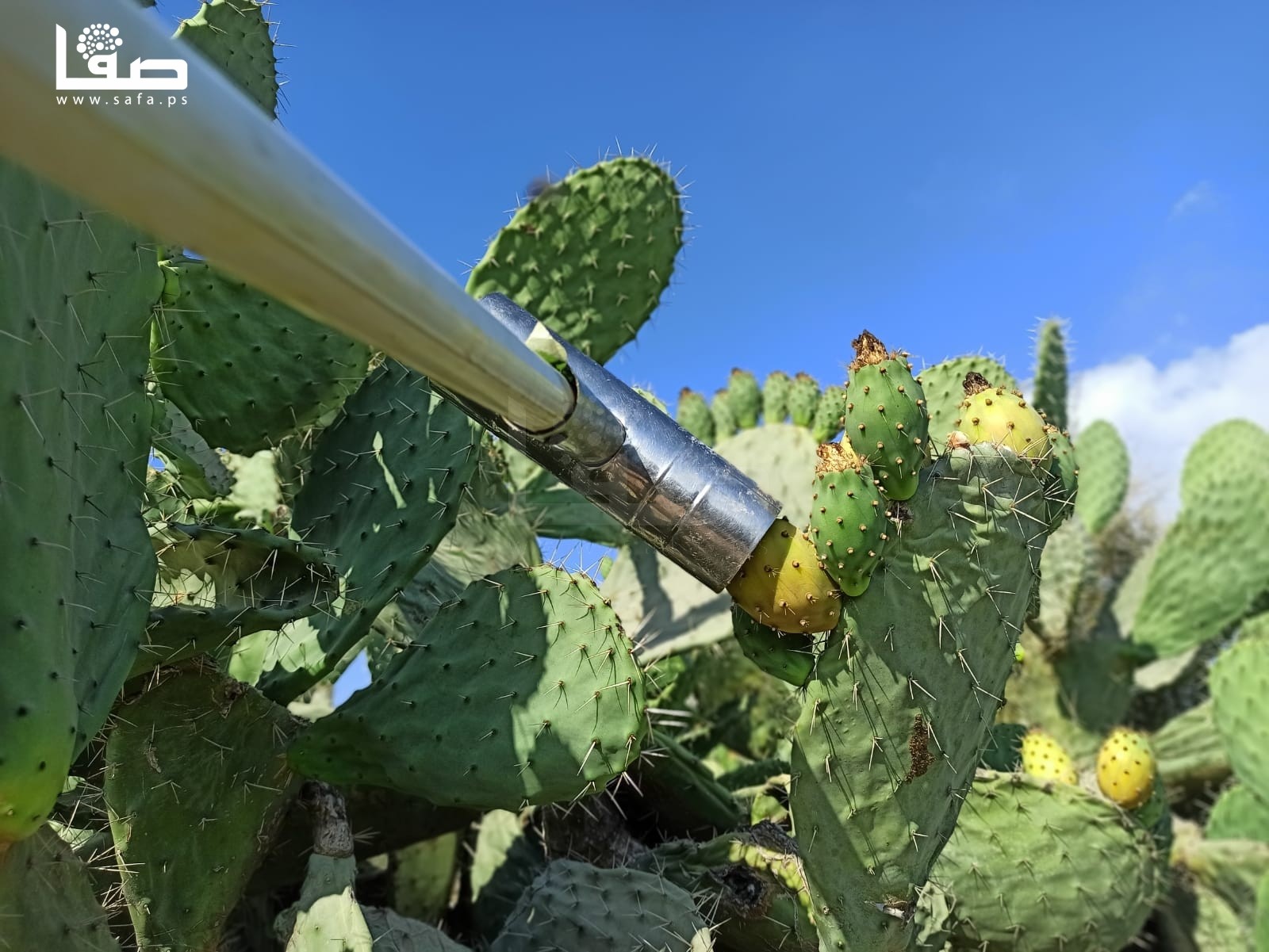 ويضيف "قطف الثمار مهمة شاقة، قد تتعرض خلالها لوخزان من أضلاع الصبر، كذلك من الأشواك الصفراء الصغيرة التي تنبت خارج الثمار، ما يجعلنا نستخدم أداة خاصة تُسمى "طوّالة أو لقاطة" لقطف الثمار خاصة البعيدة عن متناول اليد".