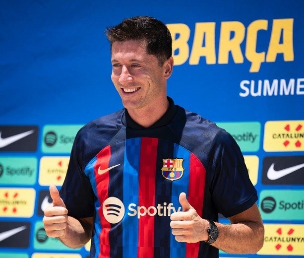 قدم نادي برشلونة الإسباني رسميًا الأربعاء نجمه البولندي روبرت ليفاندوفسكي القادم من بايرن ميونيخ الألماني، وذلك خلال حفل خاص أقيم في معسكر الفريق الإعدادي بالولايات المتحدة الأميركية.
