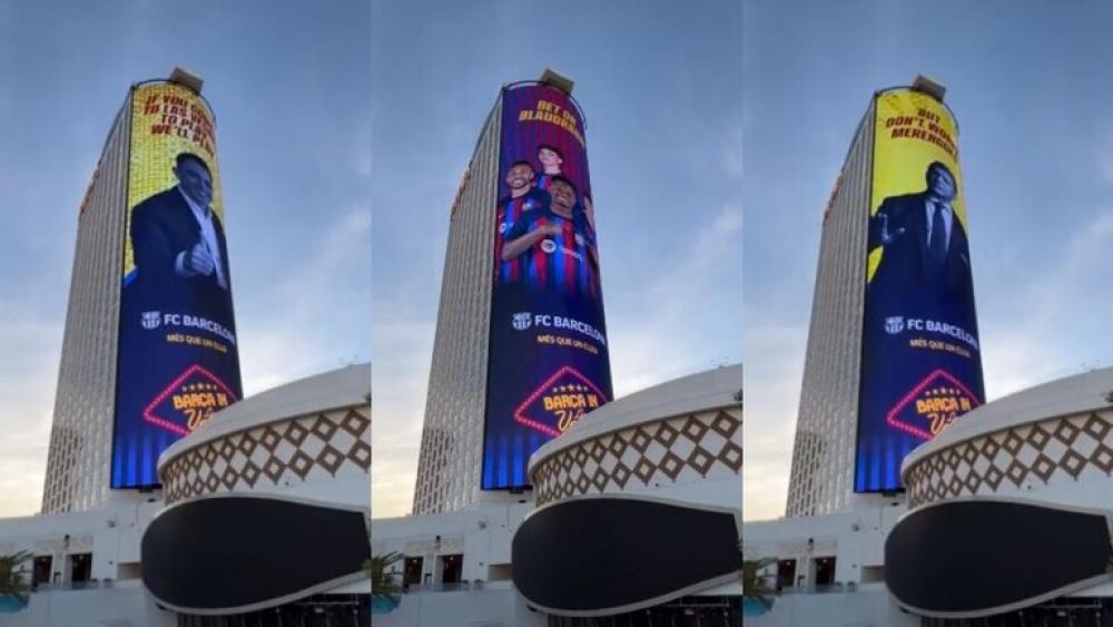 ونشر الحساب الرسمي لنادي برشلونة على موقع "تويتر" مقطع فيديو "ساخر" من غريمه التقليدي ريال مدريد، بطله رئيس النادي الكتالوني خوان لابورتا، الذي يظهر على لافتة عبر شاشات الإعلانات الضخمة قرب الفندق الذي يقيم فيه "البلوجرانا" بمدينة "لاس فيجاس"، ومكتوب عليها باللغتين الكتالونية، والإنجليزية: "إذا كنتم قد جئتم إلى لاس فيجاس للعب، سنلعب، لكن لا تقلق يا ميرينجي، ما يحدث في فيجاس يبقى في فيجاس".