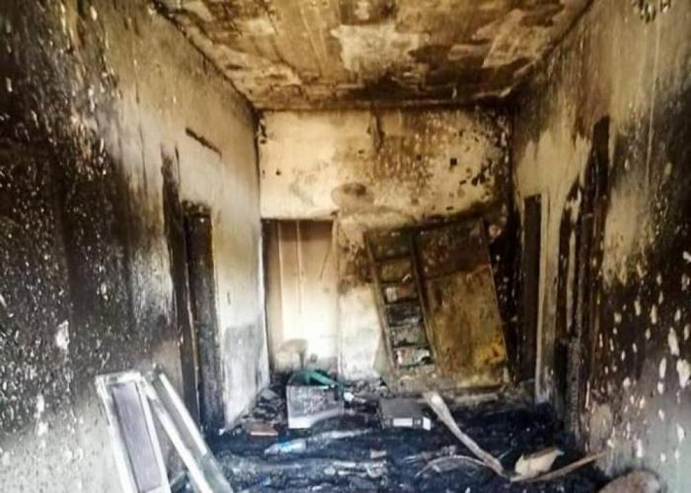ولفتت إلى أن الحريق تسبب بتدمير المنزل بشكل كامل.