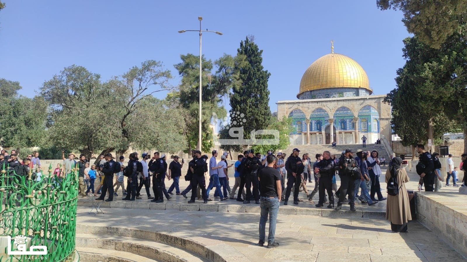 وبينت أنه اقتحم اليوم 2176 متطرفًا باحات المسجد تحت حماية قوات الشرطة والمخابرات، التي أمنت لهم جولاتهم ورقصاتهم وغنائهم وانبطاحهم داخل الباحات ضمن الطقوس التوراتية التي يقومون بها في استفزاز واضح لمشاعر المسلمين.