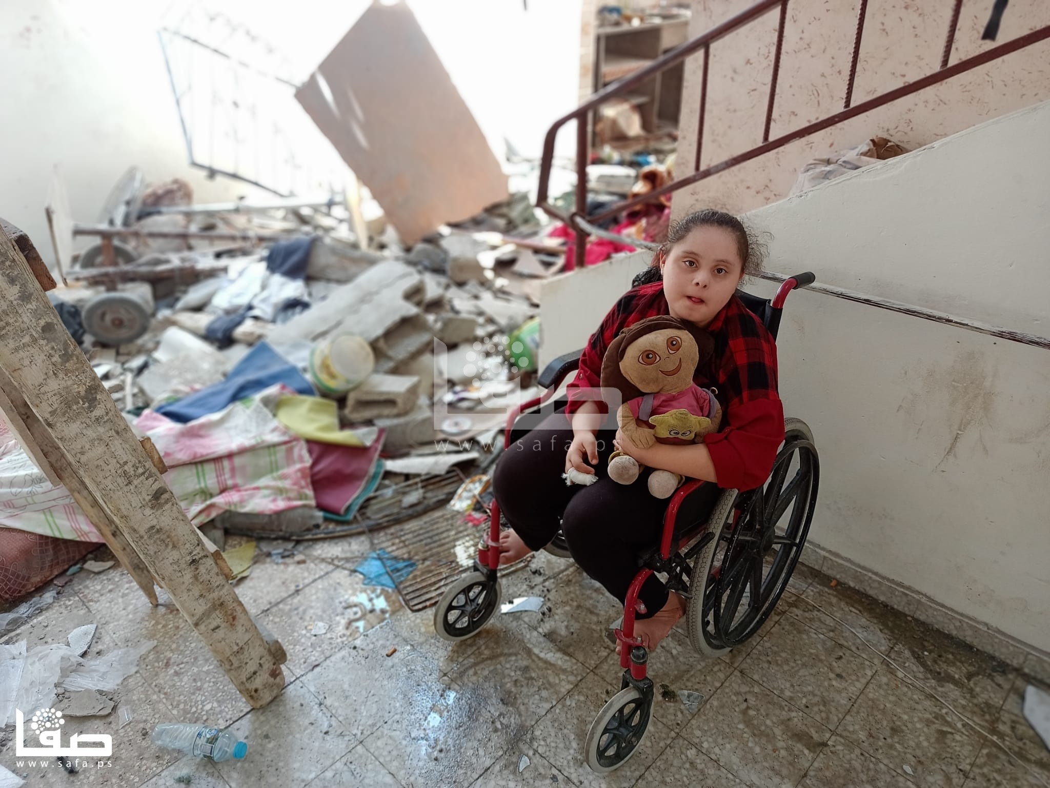 يقول "سمير" لمراسل "صفا": "حملتها وهي تصرخ ولا تستطيع التحرك من بين الركام ولم ألاحظ من هول المشهد أنها مُصابة، حتى تبين لنا لاحقًا؛ فلم يعد لها أي شيء تحتفظ له من ملابس أو كرسي متحرك أو حتى ألعابها".