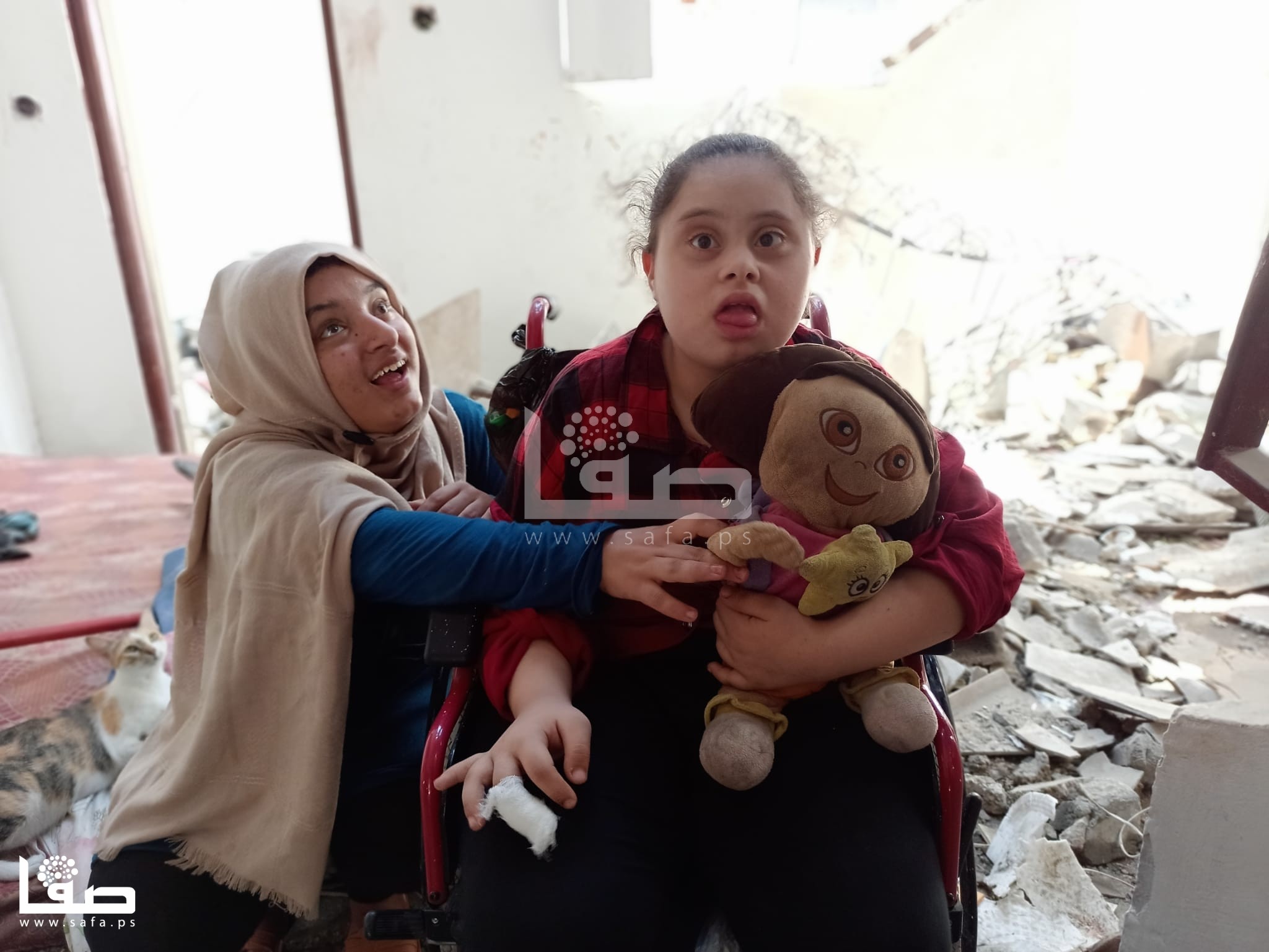 فقد فقدت "حلا" كرسيها المتحرك وألعابها وخزانتها التي تضم مقتنياتها وملابسها مع شقيقتها ميسون التي تعاني إعاقة ذهنية؛ وعادت بعد نحو أسبوع لتتفقد غرفتها وتبحث بين الركام عن بقايا ذكرياتها هناك مع شقيقتها.
