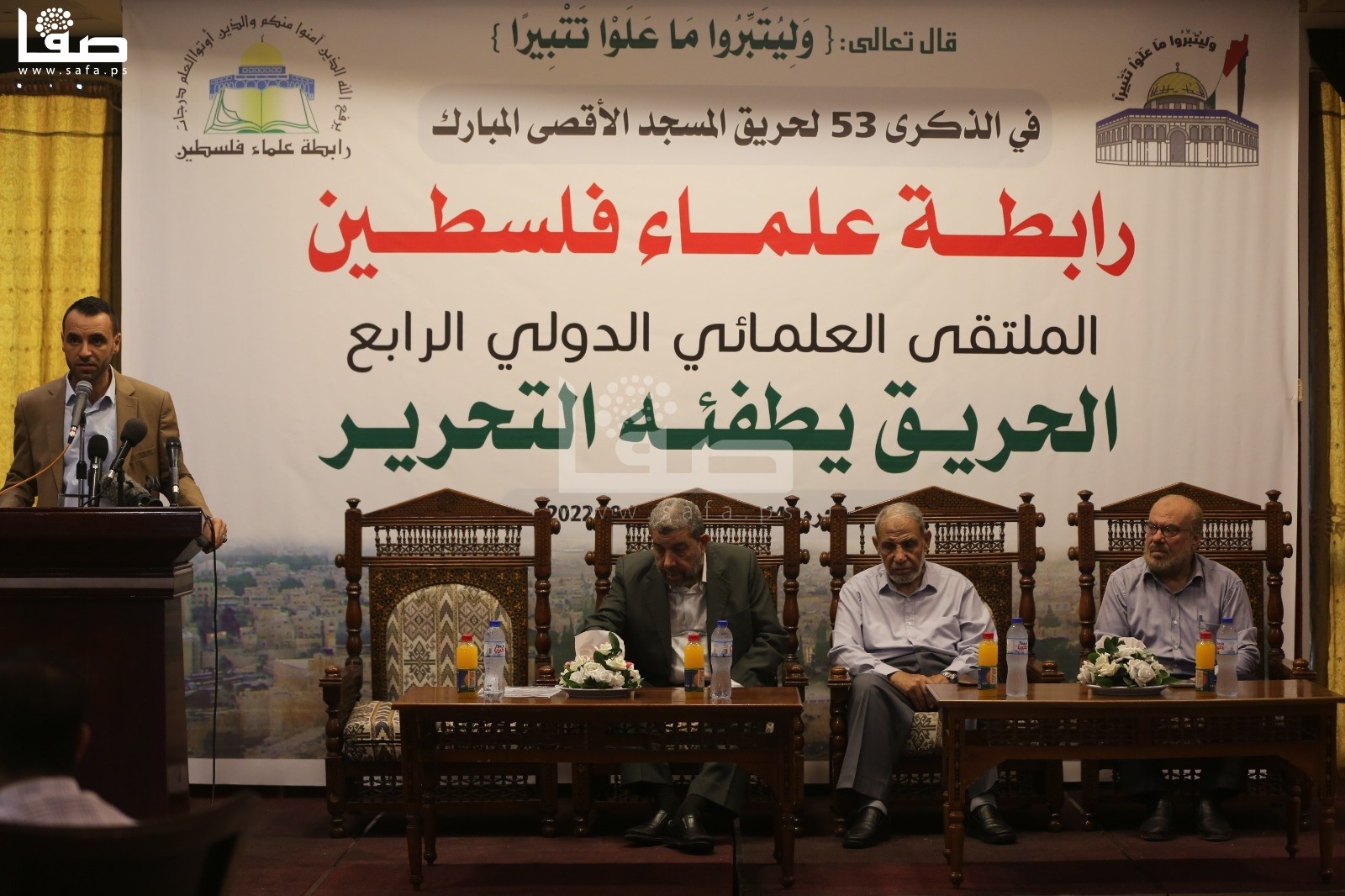وشارك بالمؤتمر الذي نظمته رابطة علماء فلسطين بمدينة غزة لفيف من العلماء والشخصيات الوطنية والاعتبارية، حيث يأتي المؤتمر في الذكرى 53 لإحراق المسجد الأقصى.