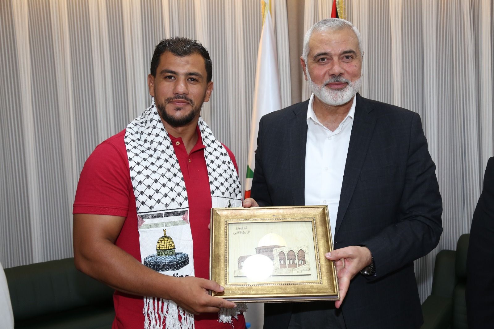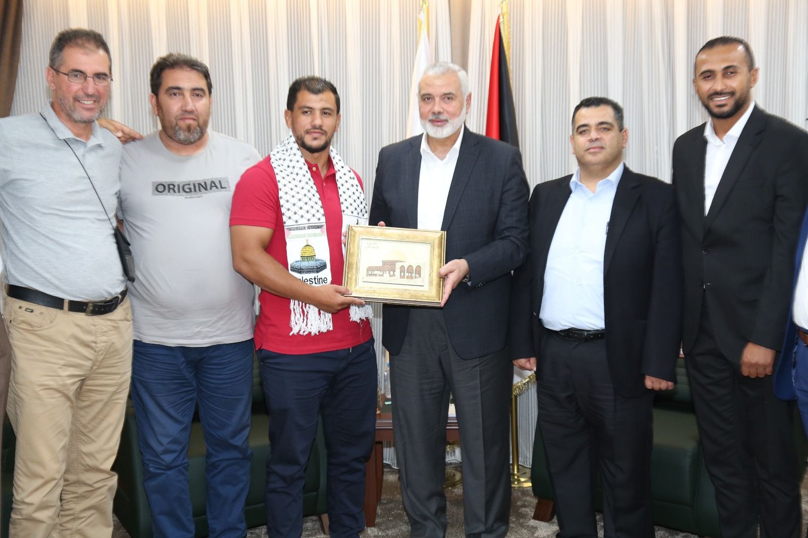 كرم رئيس المكتب السياسي لحركة حماس إسماعيل هنية، البطل الجزائري فتحي نورين الذي رفض مواجهة لاعب "إسرائيلي" في أولمبياد طوكيو، والوفد الشبابي الجزائري المشارك في المؤتمر الشبابي الدولي الثالث لنصرة القدس، وفلسطين مساء اليوم الاثنين في مدينة إسطنبول التركية.