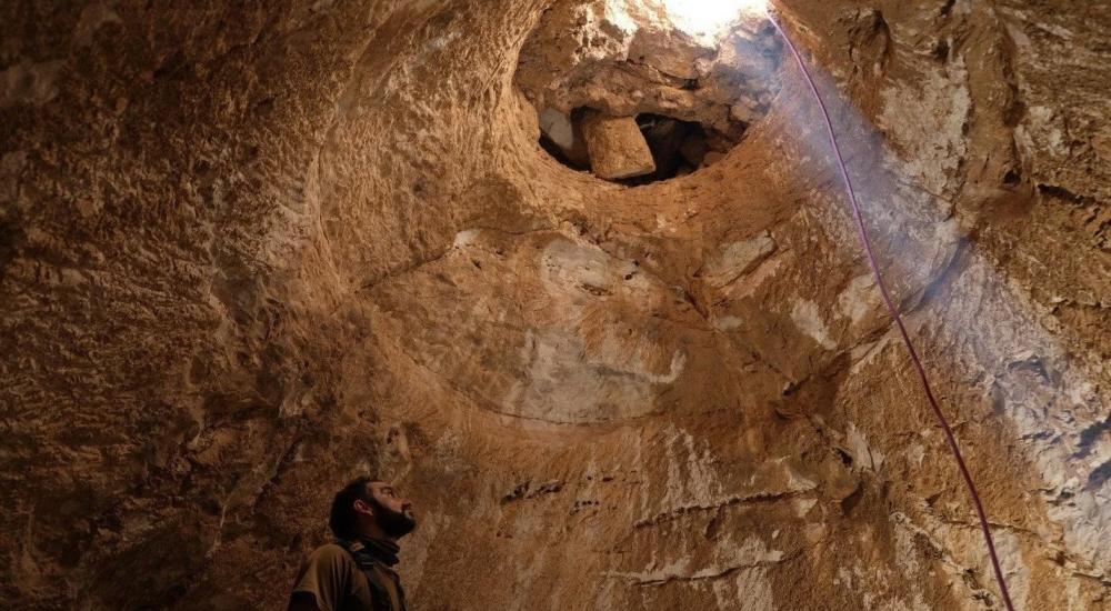 وأضافوا أنه "كانت مفاجأتنا الكبرى اكتشاف فتحة أسفل الغرف المُقببة، وأدت إلى صهريج محفور في الصخور العميقة".