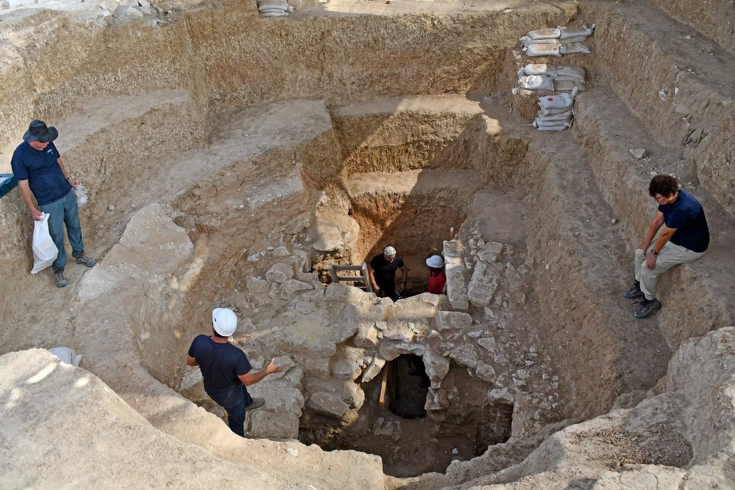 وقالوا "لقد فوجئنا باكتشاف مجموعة من الأقبية المبنية بالحجارة على عمق 5.5 متر تحت الفناء، بارتفاع 2.5 متر، تم بناء الخزائن بعناية، وربما أدت إلى مجمعات إضافية تحت الأرض لم يتم الكشف عنها بعد".