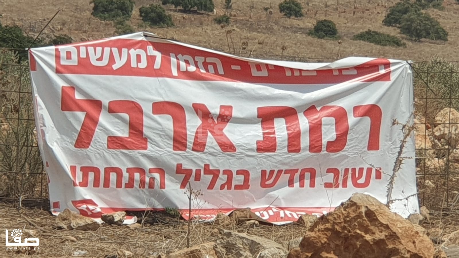 وإلى جانب وضع لافتة إعلان إقامة مستوطنة "رمات أربيل"، وضع المستوطنون لافتة أخرى تؤكد أن إقامتها "لن يكون مجرد كلام، بل أفعال".