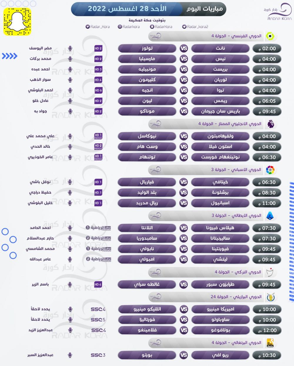 تتجه أنظار عشاق كرة القدم اليوم الأحد لعدة مباريات في الدوريات الأوروبية المختلفة.