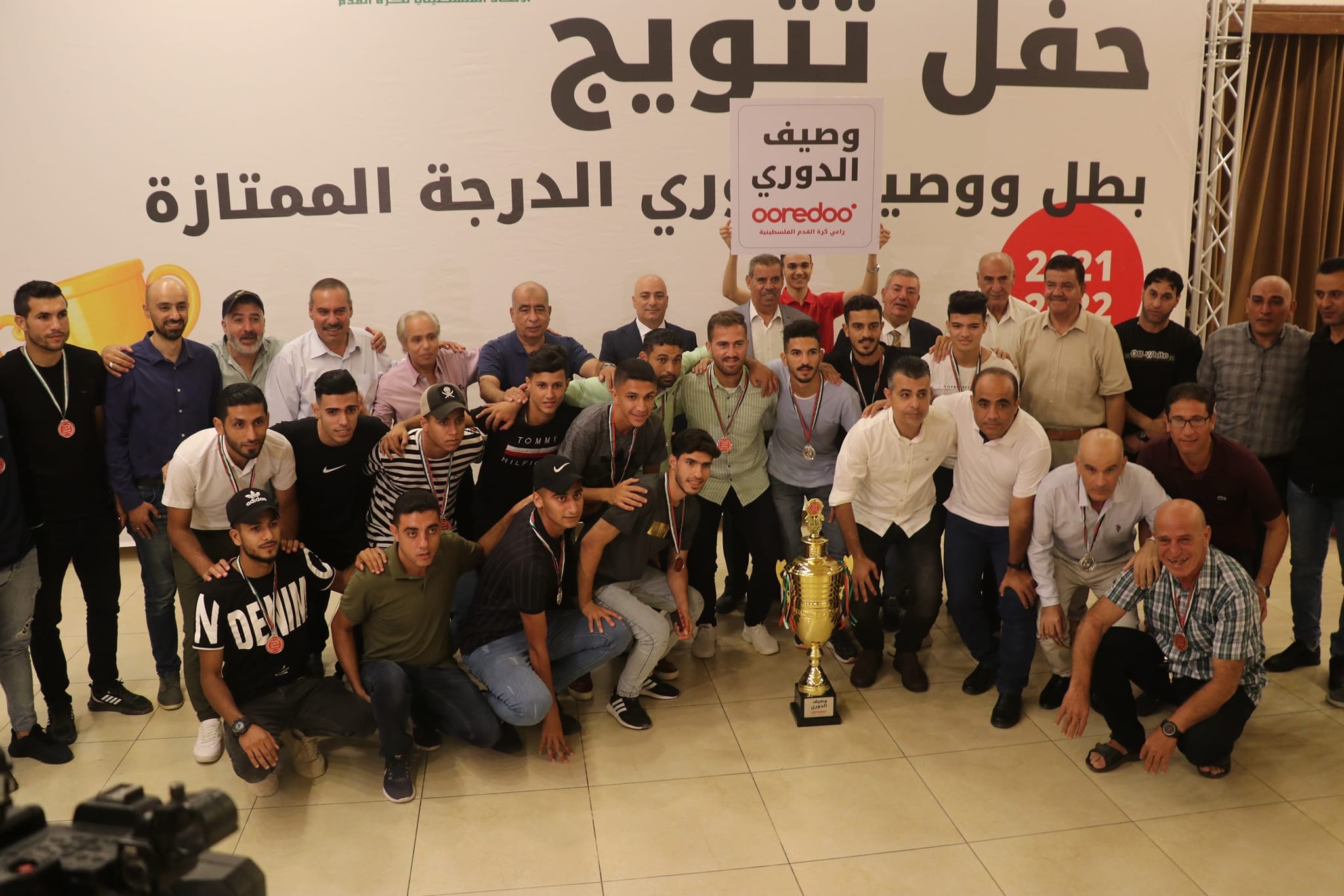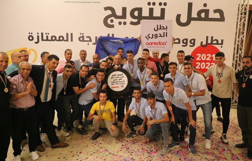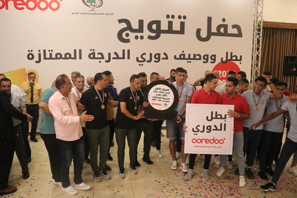 توج اتحاد كرة القدم في قطاع غزة الأحد بطل دوري الدرجة الممتازة شباب رفح، والوصيف اتحاد الشجاعية للموسم الرياضي 2021/2022 في الحفل الذي أقيم بقاعة "الروتس" في مدينة غزة برعاية شركة "أوريدو".