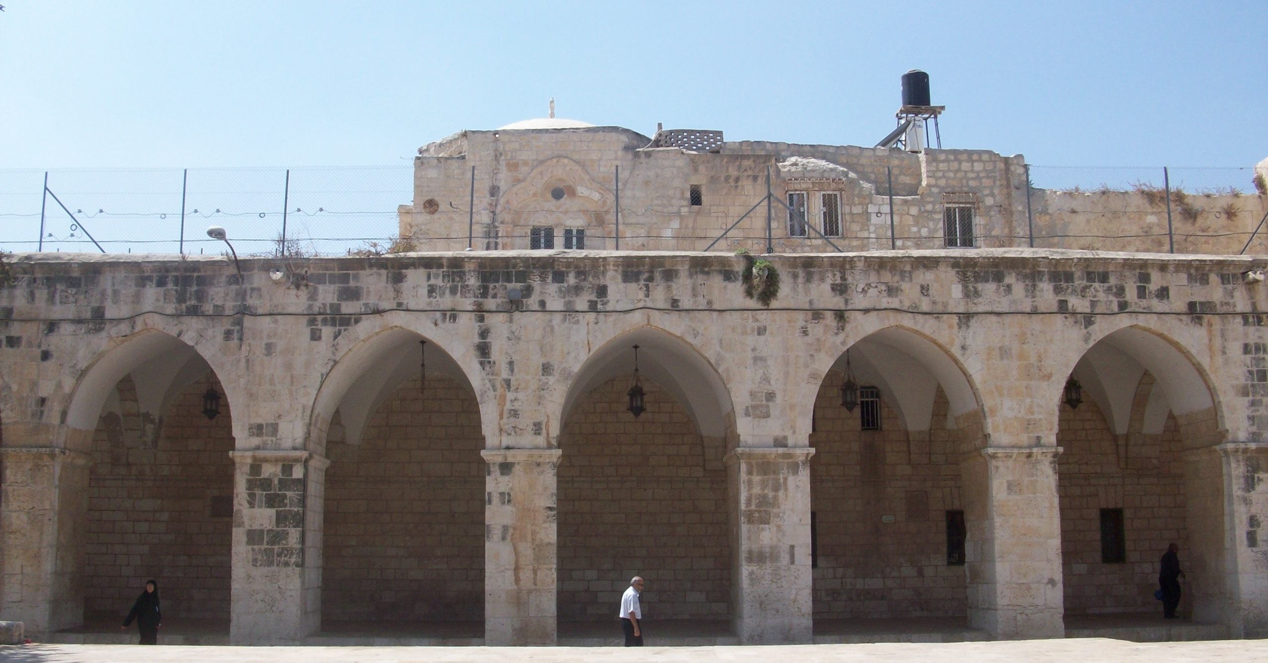 ذات منظر معماري جمالي مميز ملاصقًا لأسوار المسجد الأقصى المبارك من جهاته الغربية والشمالية والشرقية، يضم في جنباته ثلاثة أروقة تاريخية، حاول الاحتلال الإسرائيلي وما زال إحكام سيطرته على رواقين منهما، ومنع المصلين والحراس من الصعود إليهما، ويخطط لإقامة كنيس فوق الرواق الغربي.