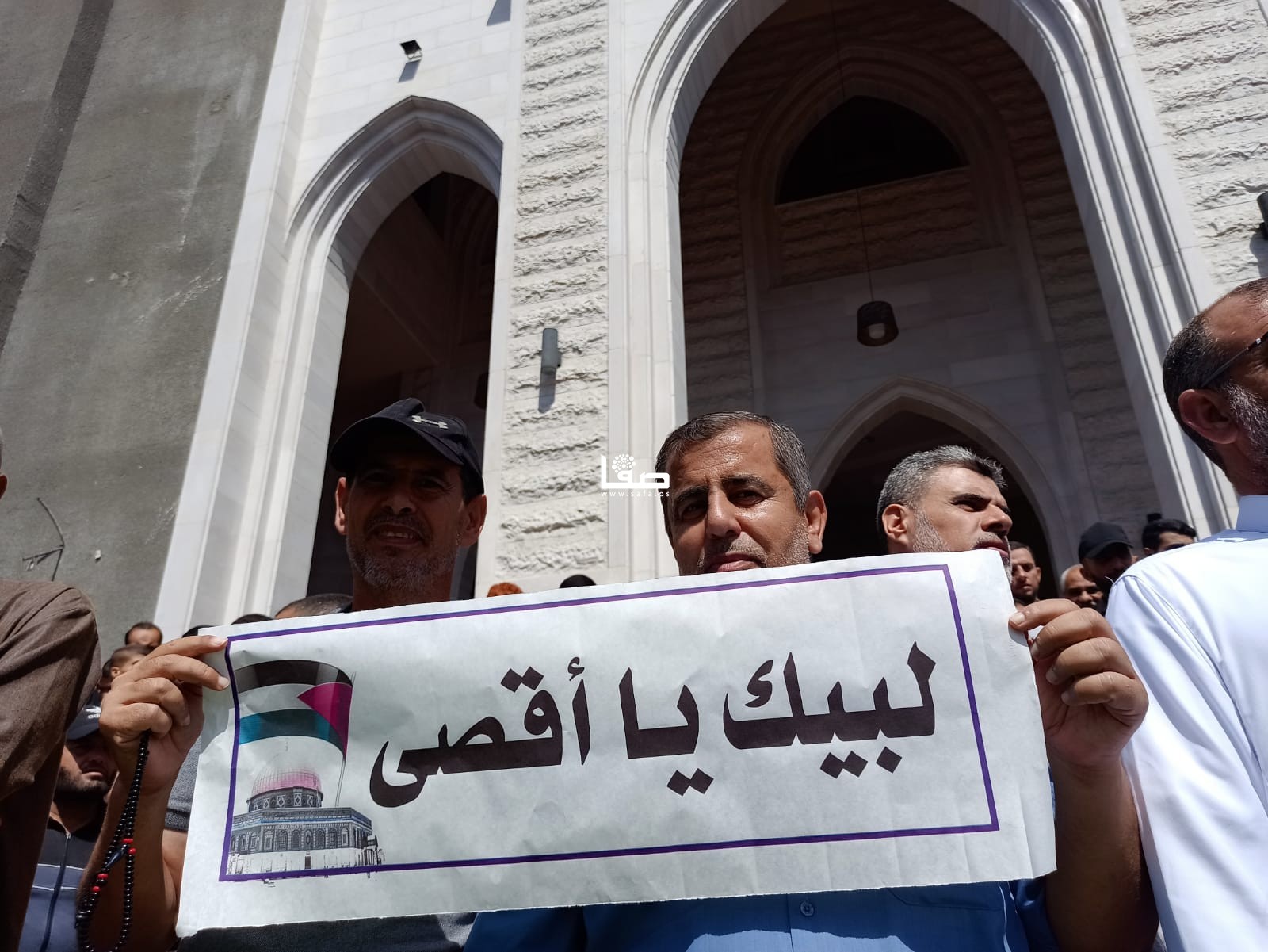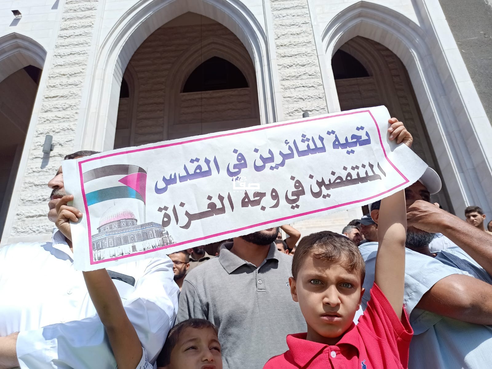ورفع المشاركون في التظاهرة لافتات ترفض مخططات الاحتلال الإسرائيلي بحق المسجد الأقصى ومدينة القدس.