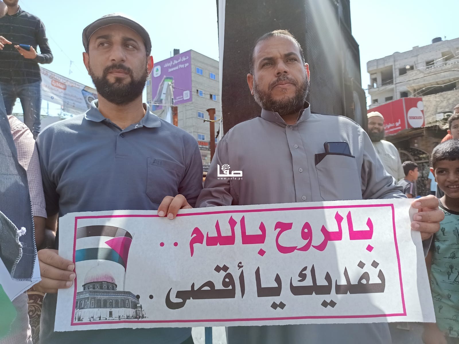 شارك الآلاف ظهر اليوم الجمعة بتظاهرة حاشدة في مدينة رفح جنوب قطاع غزة نصر لمدينة القدس المحتلة والمسجد الأقصى المبارك.