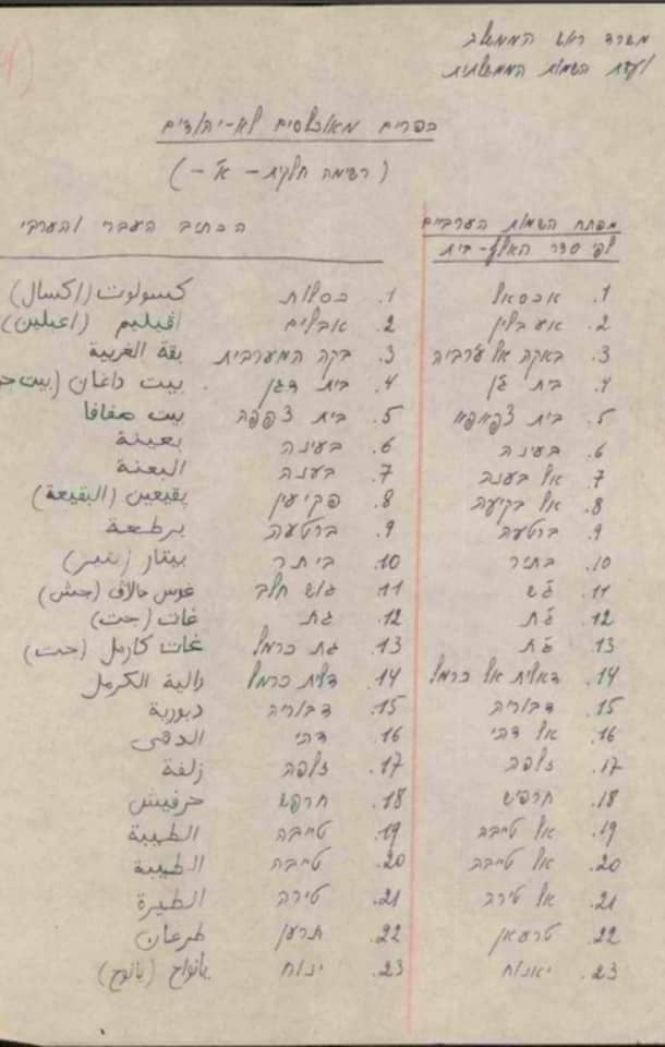 ٢. بلدات عربية مهجرة كتب اسمها العبرية، وبالعربية يكتب اسمها العبري المجدد.