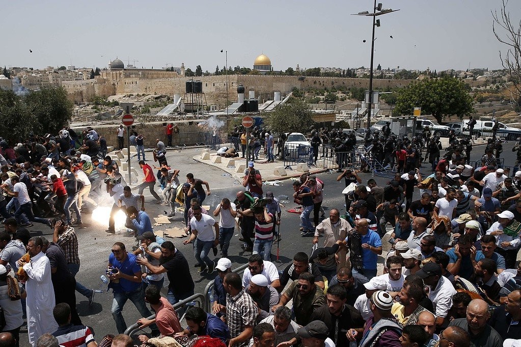رابط العشرات من أبناء الداخل الفلسطيني المحتل صباح الاثنين على أبواب المسجد الأقصى المبارك، بعد منع قوات الاحتلال الإسرائيلي دخولهم لباحات المسجد، في اليوم الأخير لما يسمى "عيد العرش".