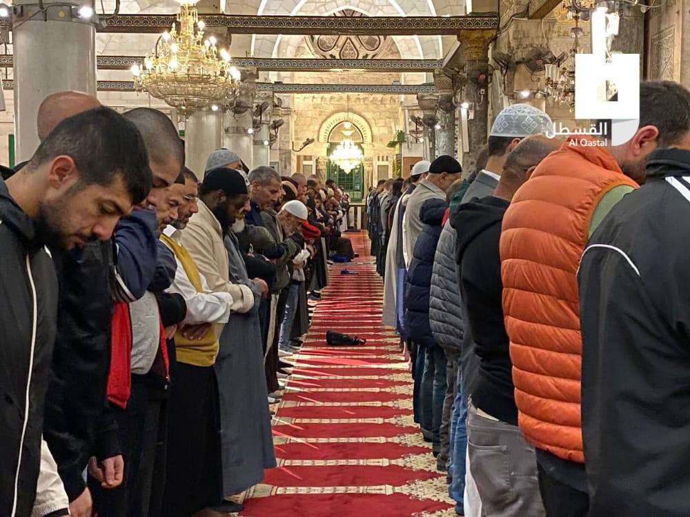 وفي المسجد الأقصى المبارك بمدينة القدس المحتلة، لبّى الآلاف نداء الفجر العظيم استجابة للدعوات لحماية المسجد الأقصى من اقتحامات المستوطنين واعتداءات الاحتلال ومخططاته، وتأكيدا على الوفاء لدماء الشهداء.