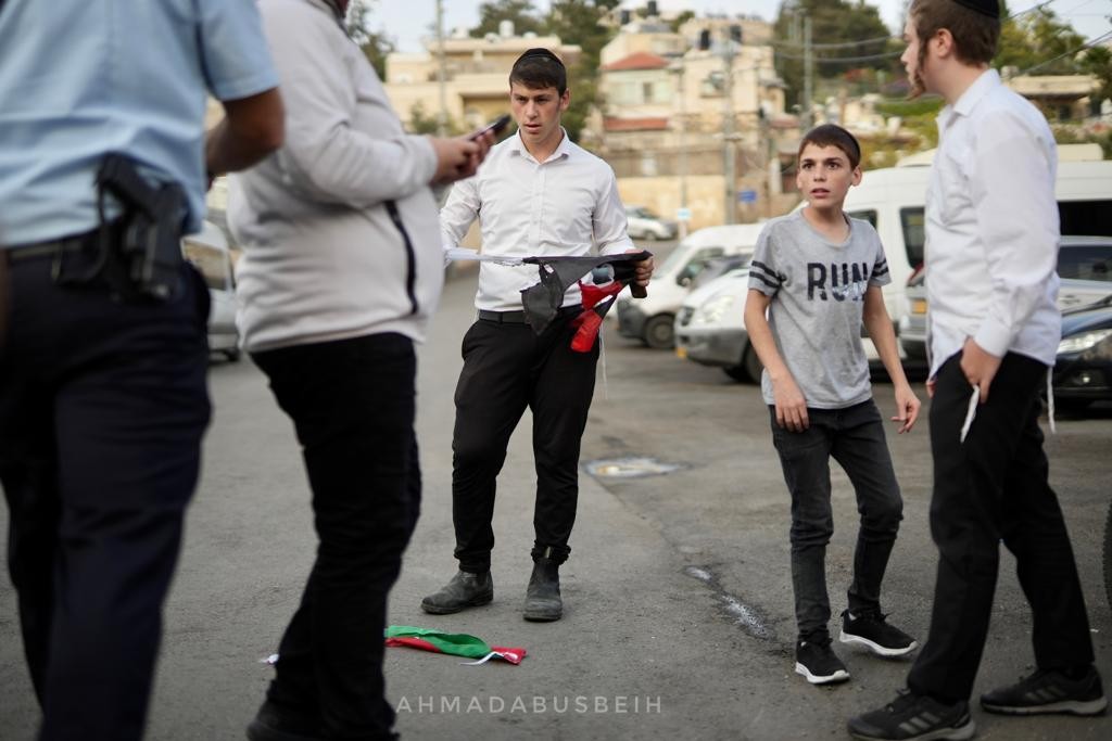 وأفاد شهود بأن مجموعة من المستوطنين مزقت العلم الفلسطيني، وشتمت بعبارات عنصرية المواطنين خلال اقتحامهم حي الشيخ جراح بالقدس المحتلة.