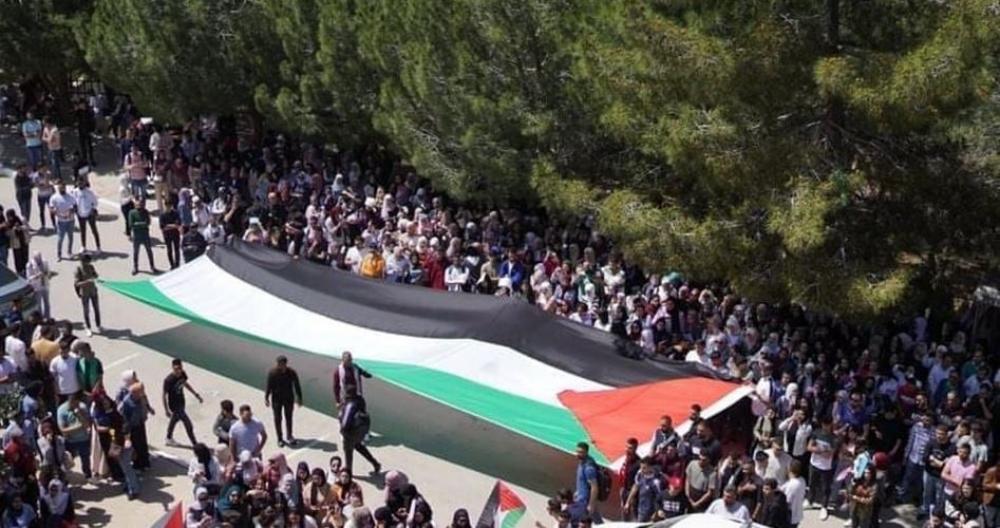 ورفع المشاركون في الوقفة العلم الفلسطيني والكوفية الفلسطينية، وتأتي الوقفة بدعوة من الحركات الطلابية في جامعة "تل أبيب"