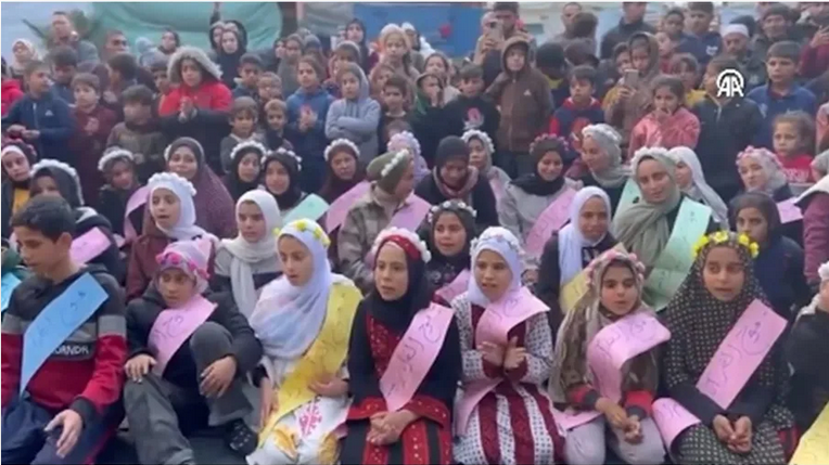 وفي أجواء احتفالية رغم الدمار، والحرب التي فتكت بهم، فإنه جرى تكريم ما بين 40 و50 طفلا وطفلة داخل مدرسة شفا عمرو، حيث يتواجد آلاف النازحين.