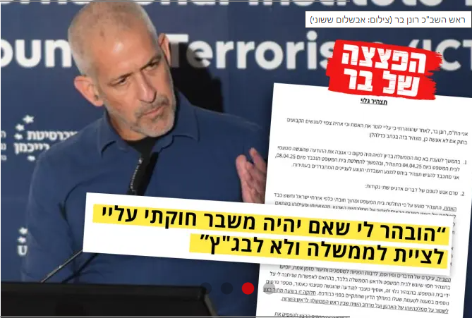 قدّم رئيس جهاز الشاباك الإسرائيلي رونين بار يوم الإثنين، تصريحًا مشفوعًا  بالقسم أمام المحكمة الإسرائيلية العليا في إطار الالتماسات المقدمة ضد قرار الحكومة إقالته، واتهم رئيس الوزراء بنيامين نتنياهو بالسعي للاستحواذ على قدرات "الشاباك" لأهداف شخصية وحزبية.