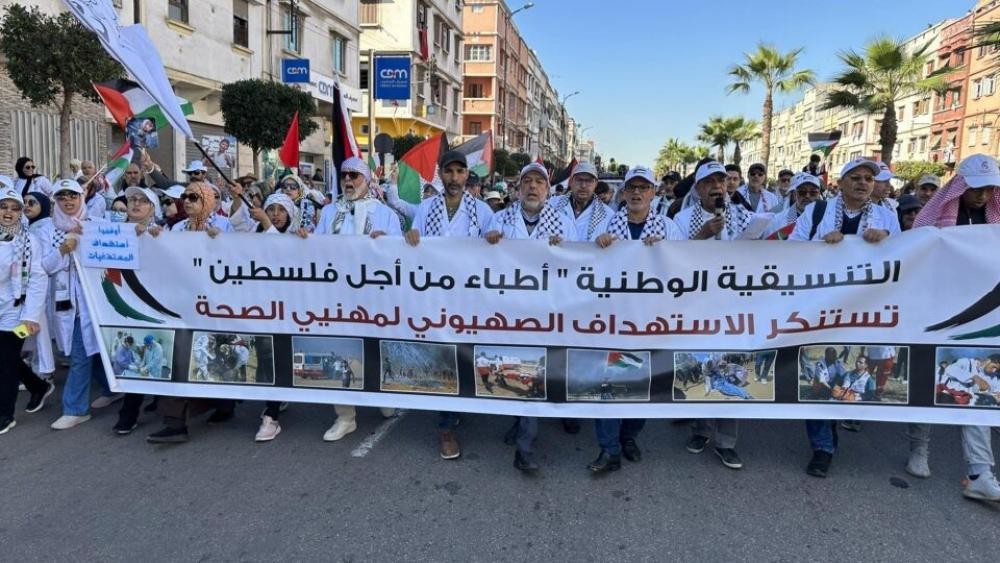 شارك عشرات الأطباء والممرضين والعاملين في القطاع الصحي بالمغرب، الخميس، في وقفة احتجاجية في مدينة الدار البيضاء للتنديد باستهداف "إسرائيل" المتواصل للطواقم الطبية في قطاع غزة والمطالبة بحمايتهم.