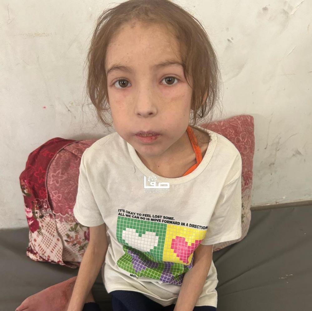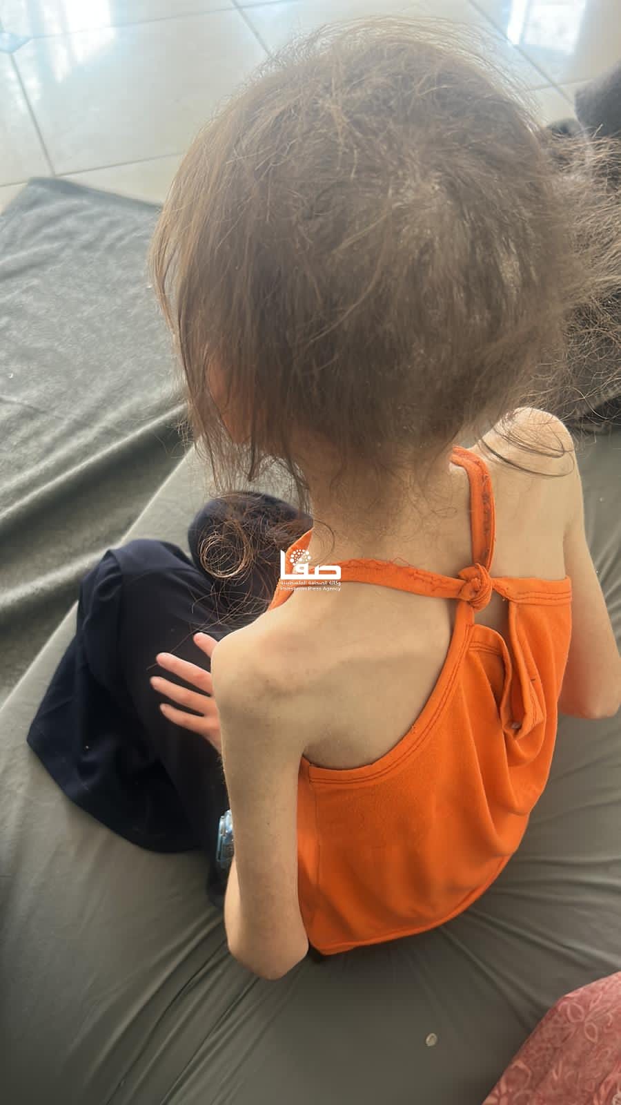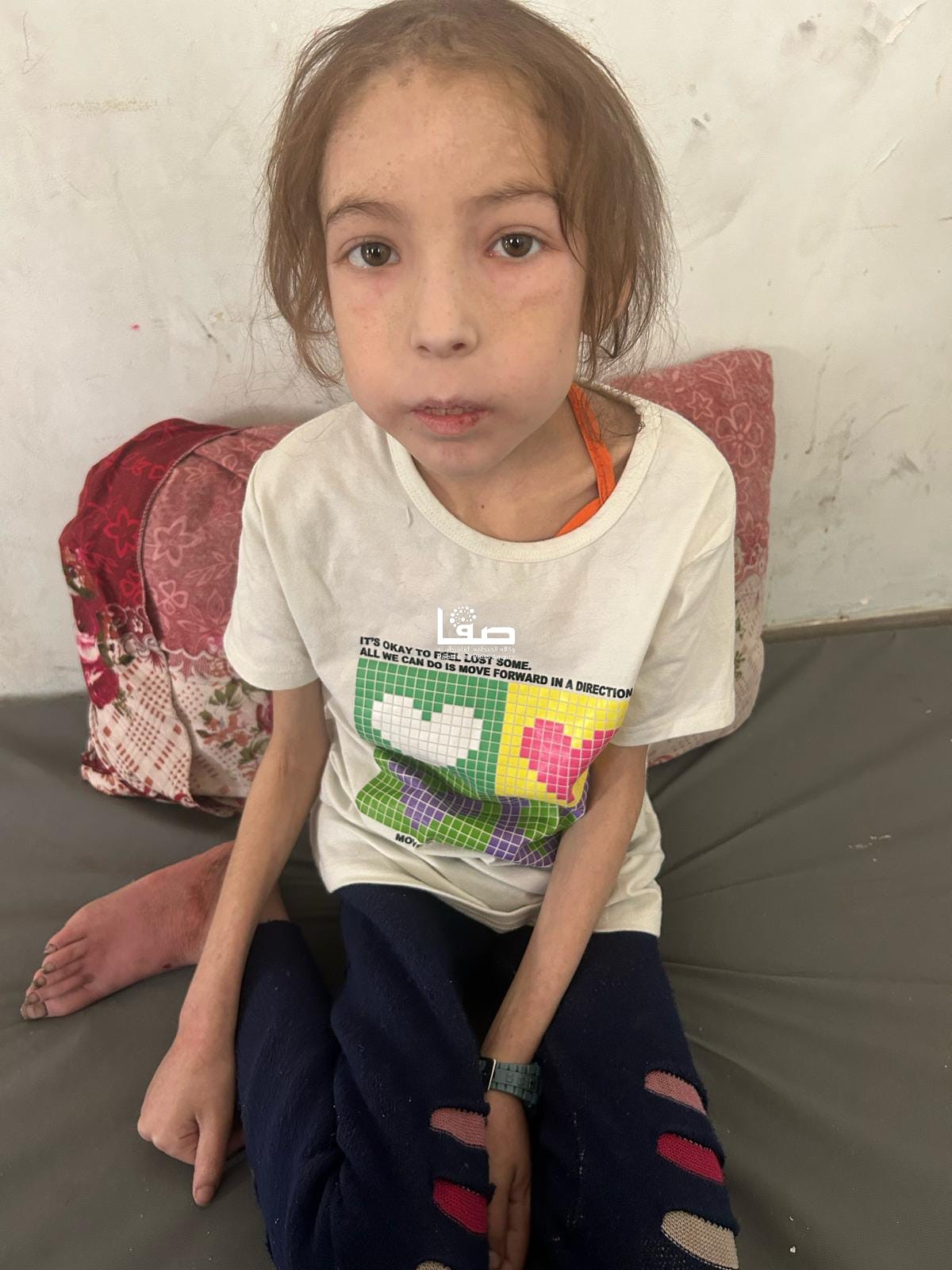 تئن "رهف" ليلًا من الجوع، تُوقظ والدتها التي لا تملك حولًا ولا قوةً سوى البكاء على ابنتها التي فقدت وزنها بشكل مخيف، بسبب المجاعة المتفشية بقطاع غزة.