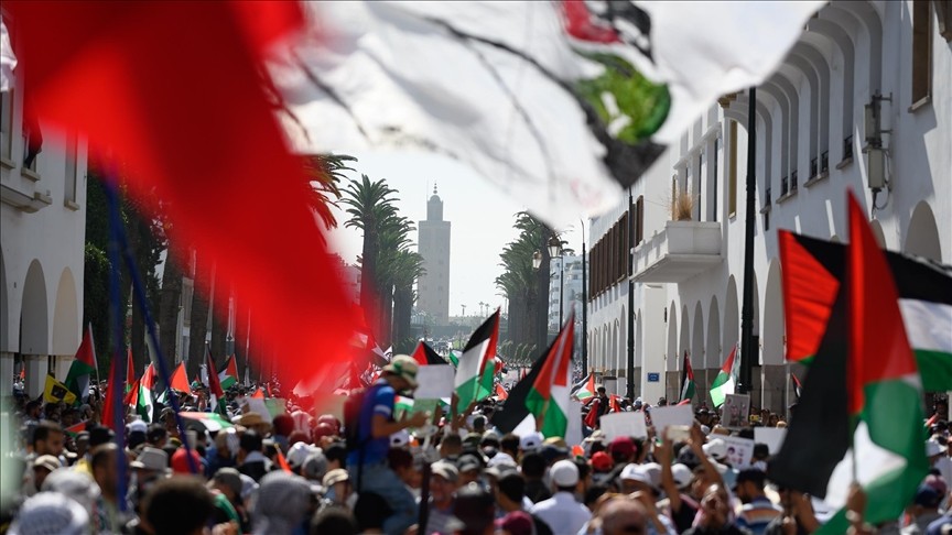 وجاءت الوقفة، السبت، بدعوة من "الهيئة المغربية لنصرة قضايا الأمة" (غير حكومية)، وشارك فيها عشرات المغاربة الذين رفعوا صور المسجد الأقصى وأعلام فلسطين، ورددوا هتافات داعمة للفصائل الفلسطينية، وأخرى منددة بالدعم الغربي، خصوصًا الأمريكي، لـ"إسرائيل".