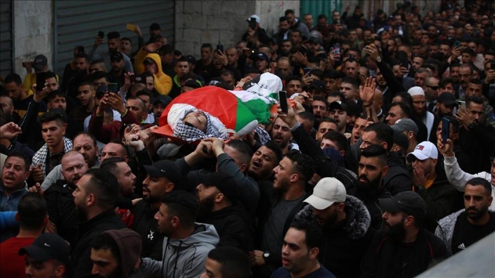 شيع أهالي قرية جيت شرق محافظة قلقيلية، الأربعاء، جثمان الشهيد الشاب جاسم إبراهيم السدة (20 عامًا).