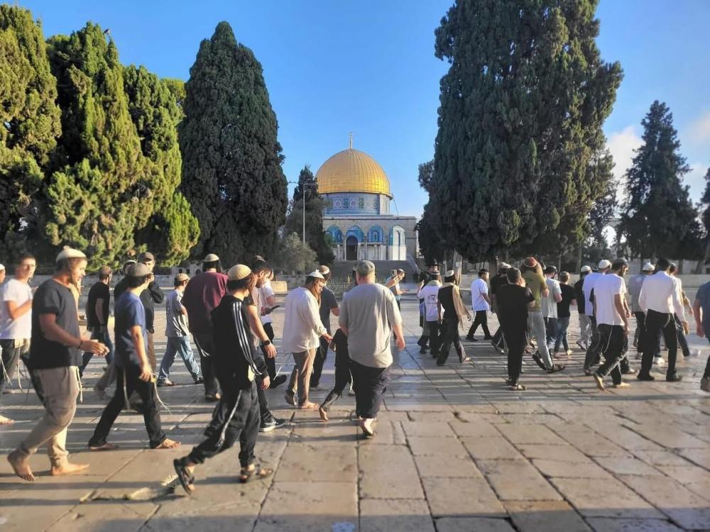 وكان آلاف المستوطنين استباحوا المسجد الأقصى، في ذكرى ما يسمى "خراب الهيكل"، وأدوا طقوسًا وصلوات تلمودية جماعية و"سجودًا ملحميًا"، فضلًا عن الرقص والغناء في باحاته، ورفع أعلام الاحتلال.